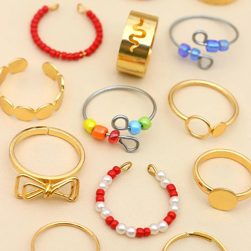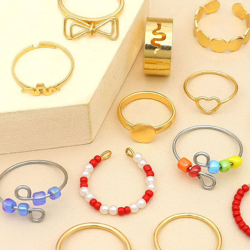Bow Heart Snake Round Multicolor Beaded Ring Set