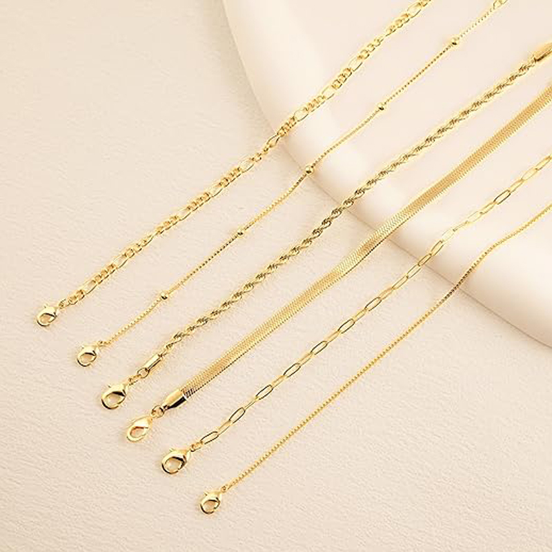 Fleepmart 14k Gold Plated Dainty Bracelet Stack Set Cute Stackable Beaded Tennis Snake Cuban Link Chain Bracelets Gifts for Teen Girls