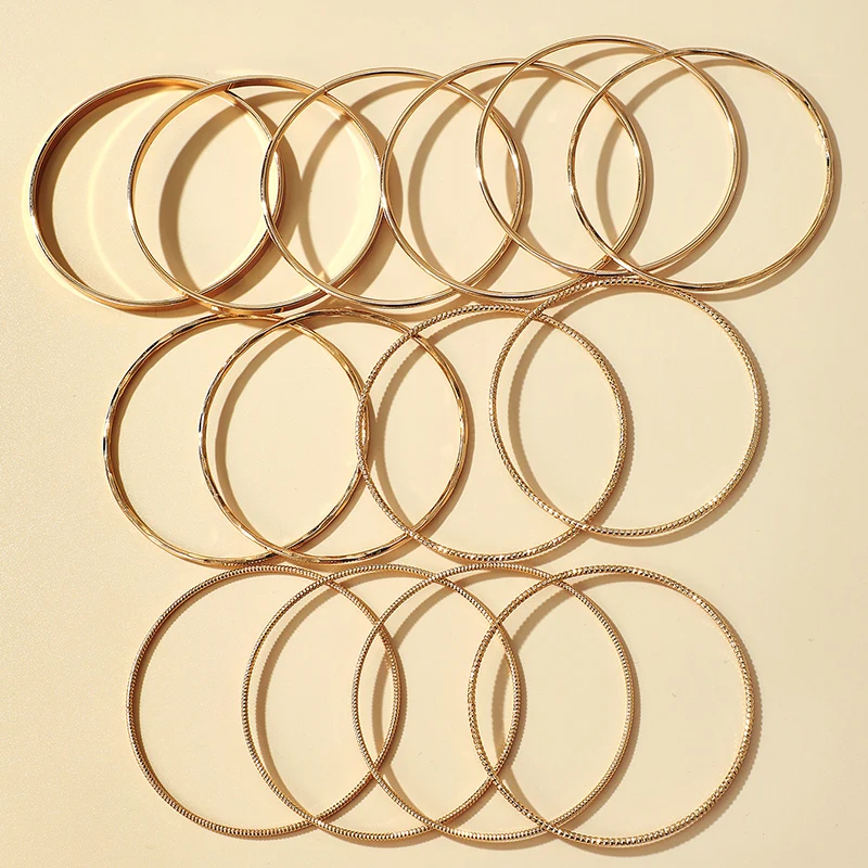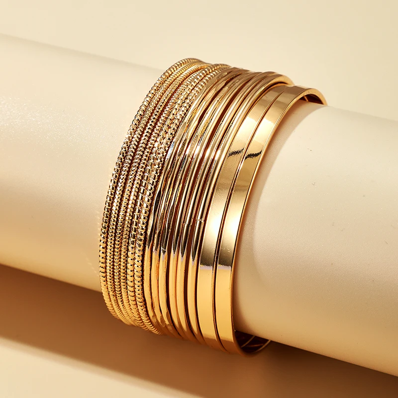 Fleepmart 14pcs/sets Trendy Gold Bracelets for Women Charming Alloy Metal Bangle Party Jewelry Bohemian Jewelry Gift