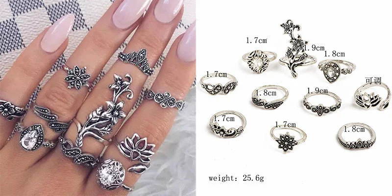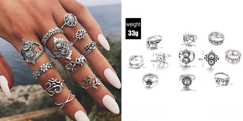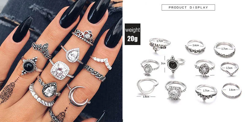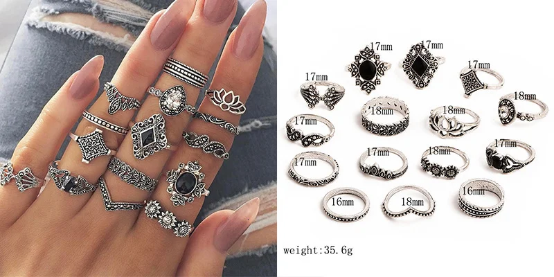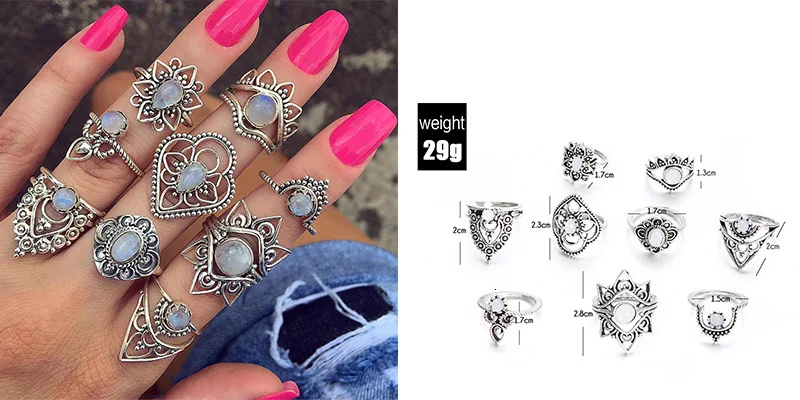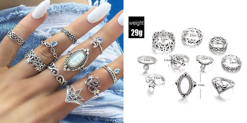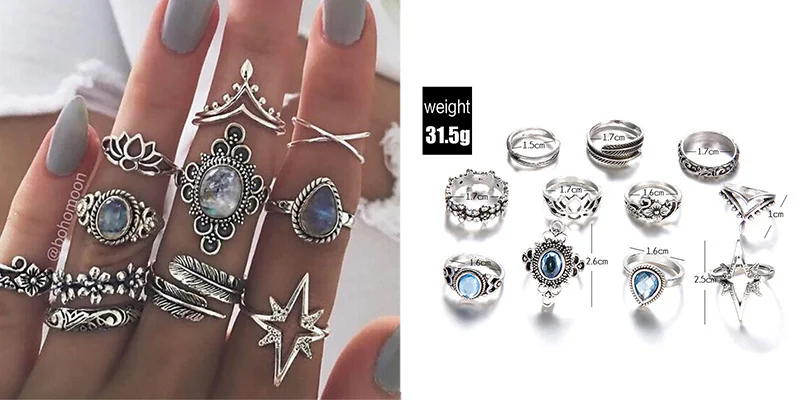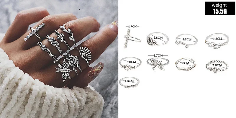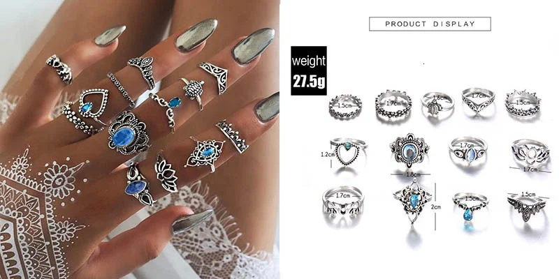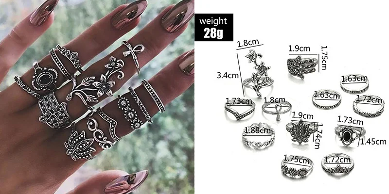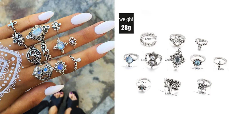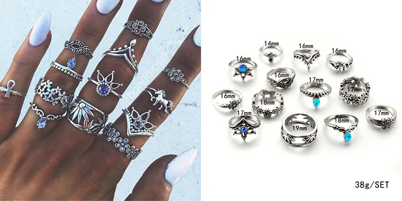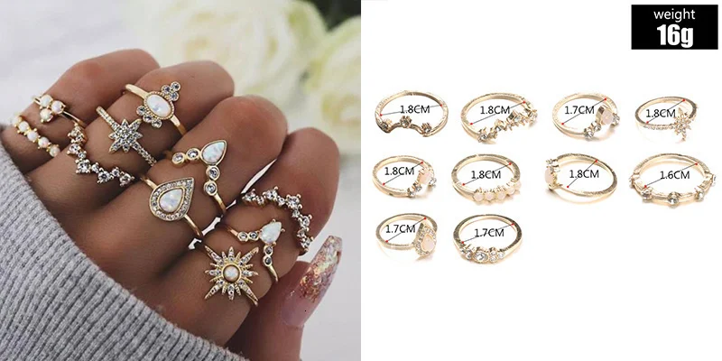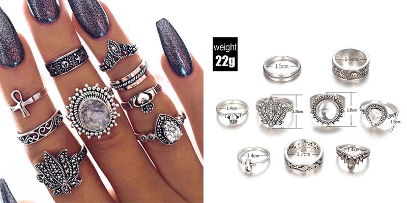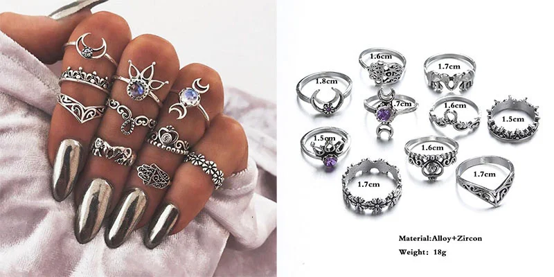 Fleepmart Vintage Purple Crystal Knuckle Rings for Women Bohemian Geometric Anel Finger Ring Set Boho Party Anillos Mujer Jewellery 2024