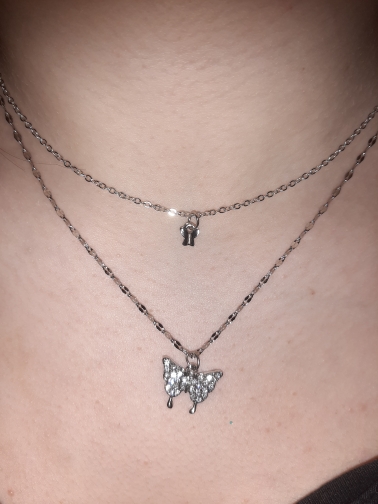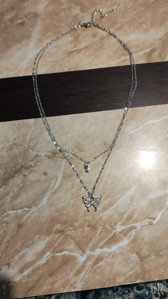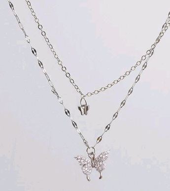 Fleepmart 17KM New Korean Silver Plated Shiny Butterfly Necklace Ladies Exquisite Double Layer Clavicle Chain Necklace Jewelry Gift