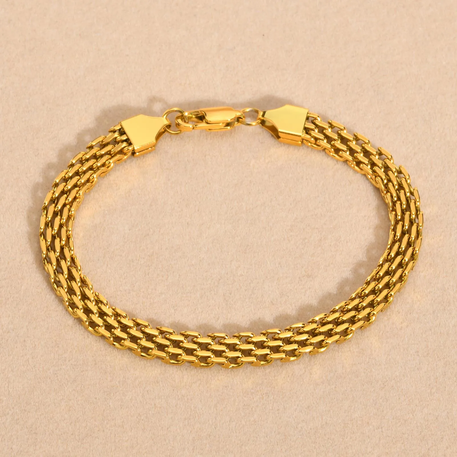 Fleepmart 18K Gold 6mm Titanium Steel Mesh Link Chain Bracelets for Women Men 17cm/6.7″ 19cm/7.5″ 21cm/8.3″