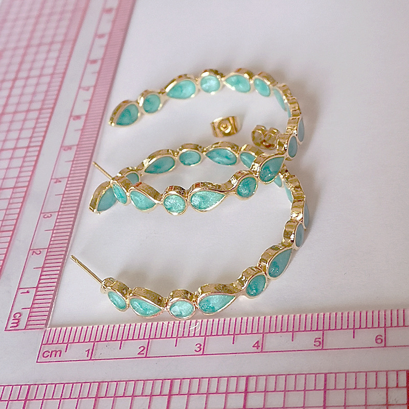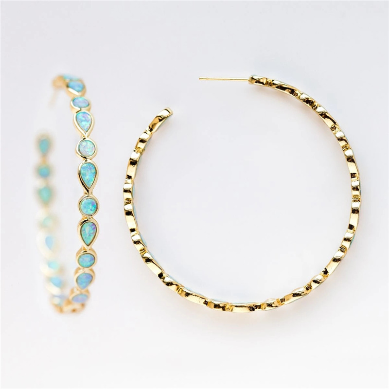 Fleepmart 18KC Gold Plate Opal Big Hoop Earrings Delicate Women’s Fashion Moonstone Waterdrop Crystal Hoops Party Work Beautiful Earrings