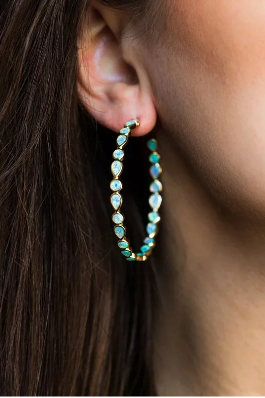 Fleepmart 18KC Gold Plate Opal Big Hoop Earrings Delicate Women’s Fashion Moonstone Waterdrop Crystal Hoops Party Work Beautiful Earrings