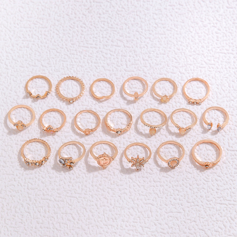 Fleepmart 19pcs/Set Bohemian Love Hollow Star Ring Set Vintage Geometric Alloy Water Drop Brick Joint Ring Set Jewelry Girl Gift