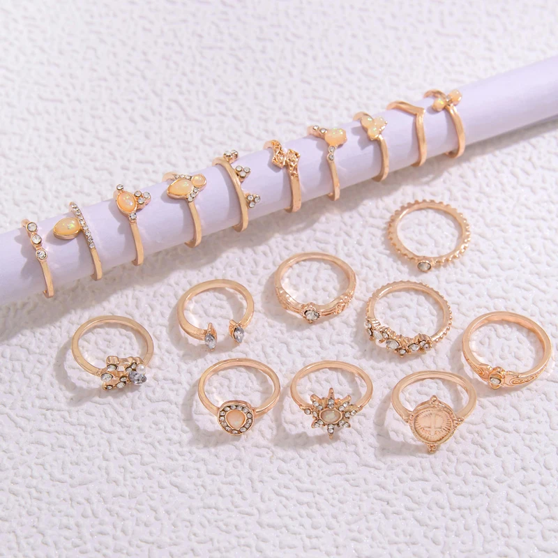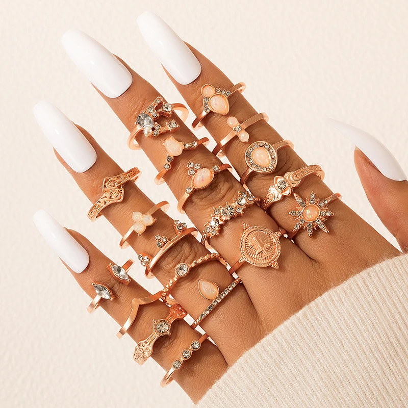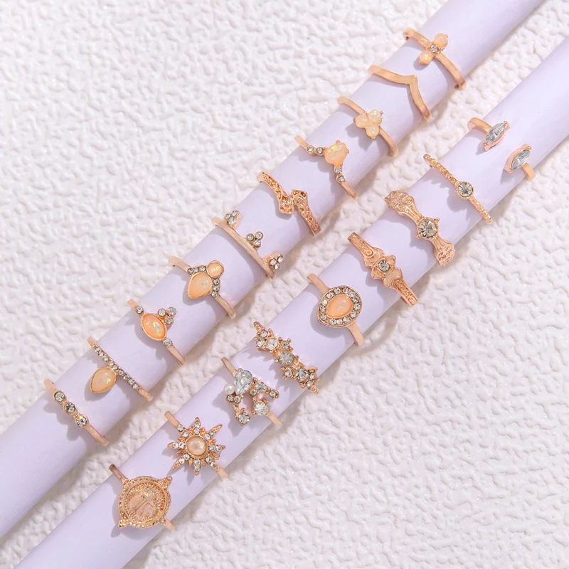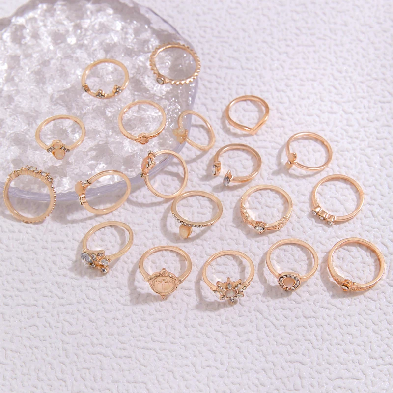 Fleepmart 19pcs/Set Bohemian Love Hollow Star Ring Set Vintage Geometric Alloy Water Drop Brick Joint Ring Set Jewelry Girl Gift