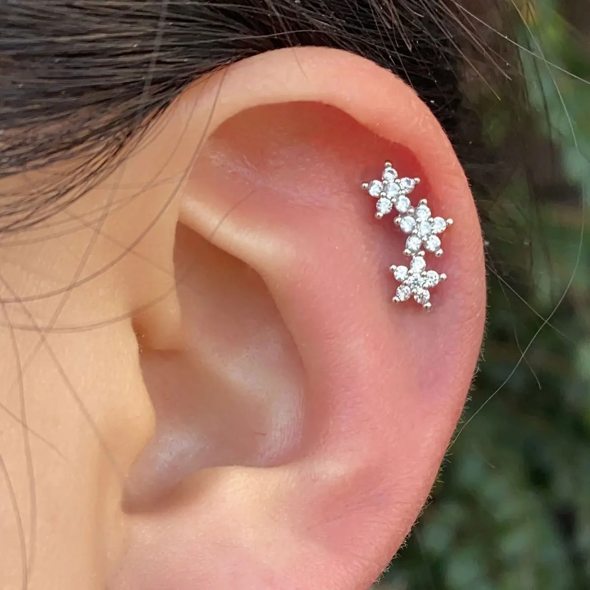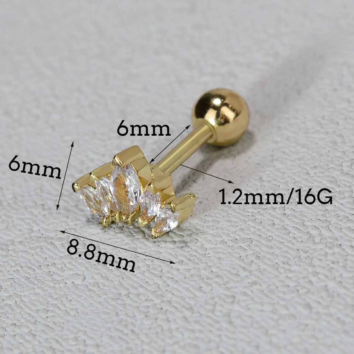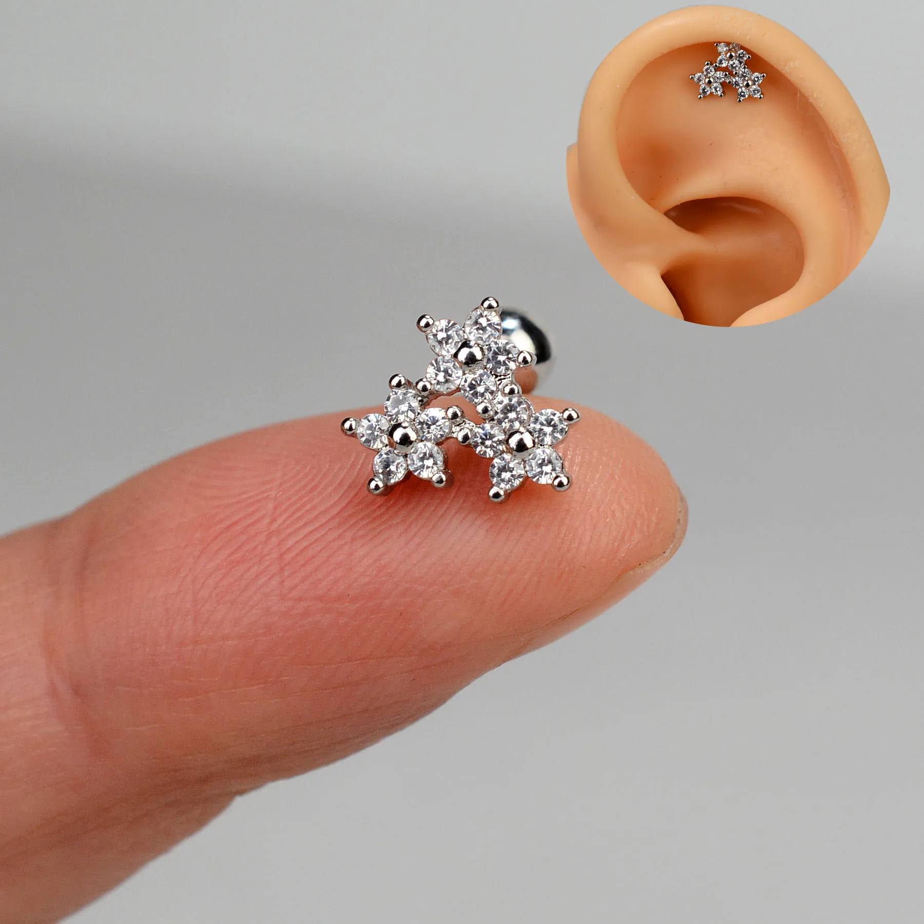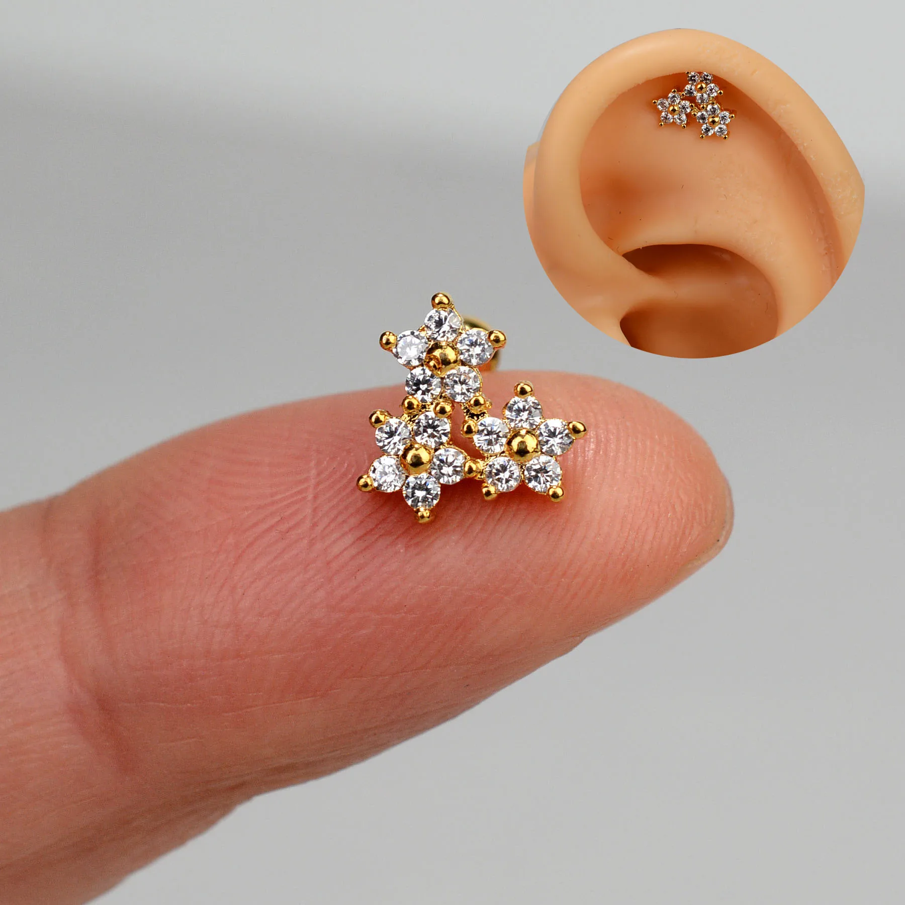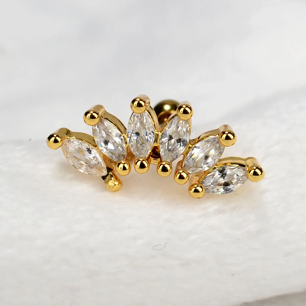 Fleepmart 1PC Flower Leaf Tragus Helix Piercing Studs Earrings Women Mini Crystal CZ Stainless Steel Earings Girls Ear Bone Fine Jewelry