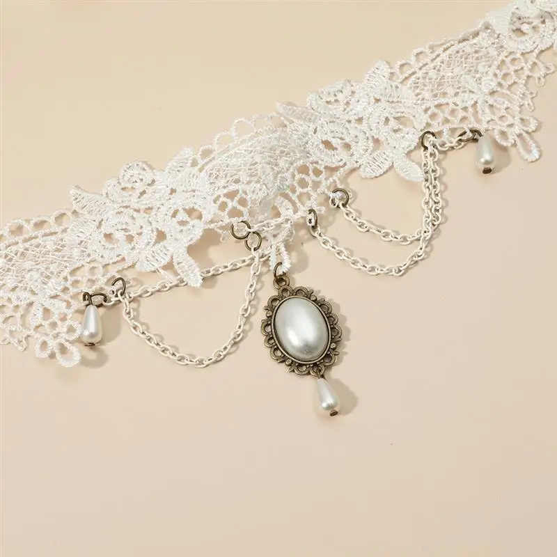 Fleepmart 1pc Gothic Style Lace Pendant Choker Fashion Faux Pearl Decor Hollow-Out Collar Necklace Charm Necklace Jewelry Accessories