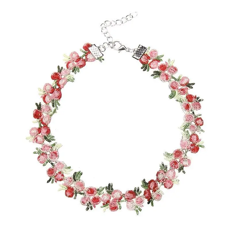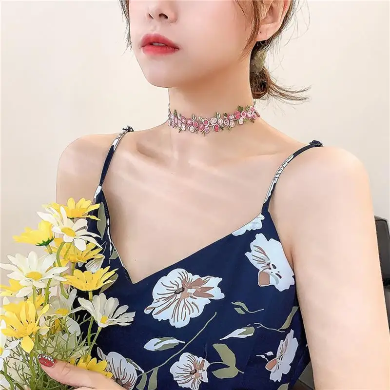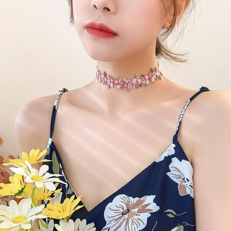 Fleepmart 1pc Romantic Sweet Flower Charms Chian Necklace Choker For Women Girl Collars Cute Flowers Fabric Lace Jewelry Accessories