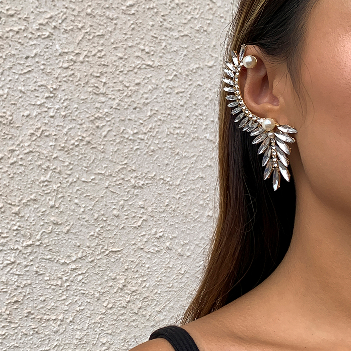 fleepmart 1PC Shiny Full Rhinestones Crystal Stud Earrings Punk Arc Ear Hanging Piercing Earrings for Women Jewelry Brincos