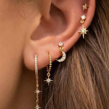 fleepmart 1PC Shiny Full Rhinestones Crystal Stud Earrings Punk Arc Ear Hanging Piercing Earrings for Women Jewelry Brincos