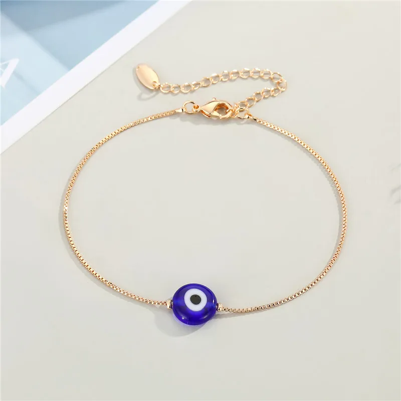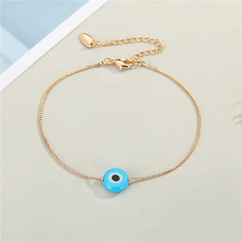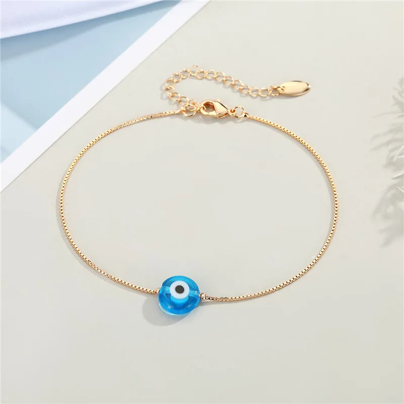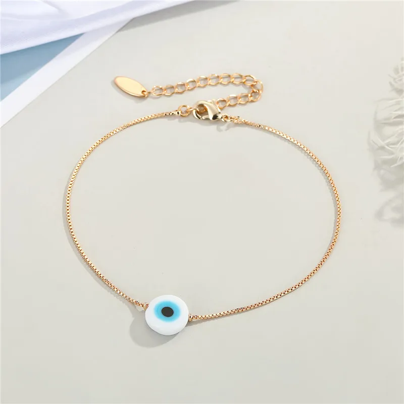 Fleepmart 1Pcs Evil Eye Beaded Anklet Women Trendy Minimalist Round Turkish Lucky Blue Eye Foot Chains Jewelry