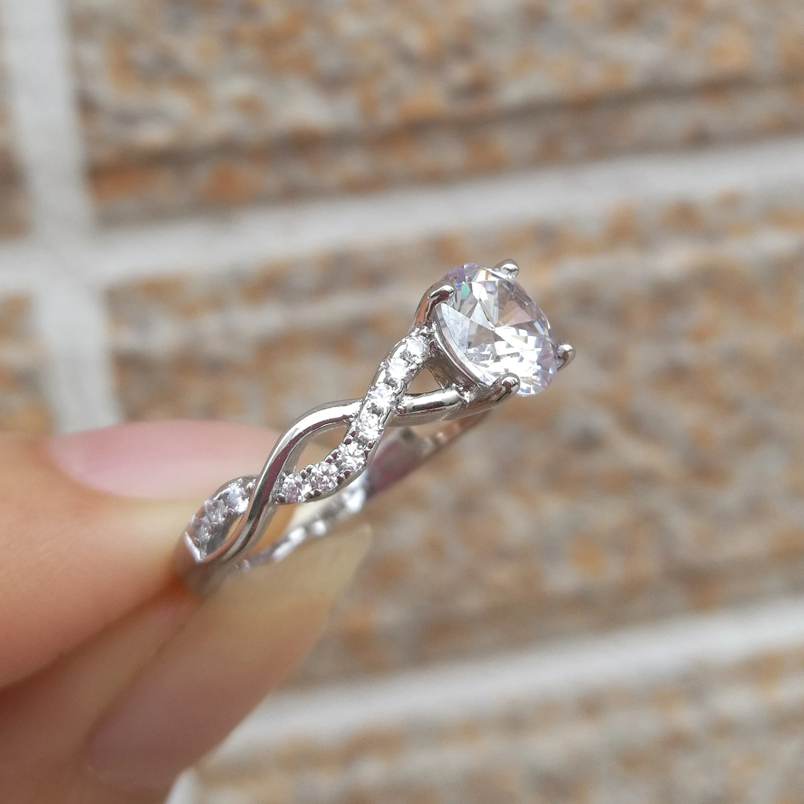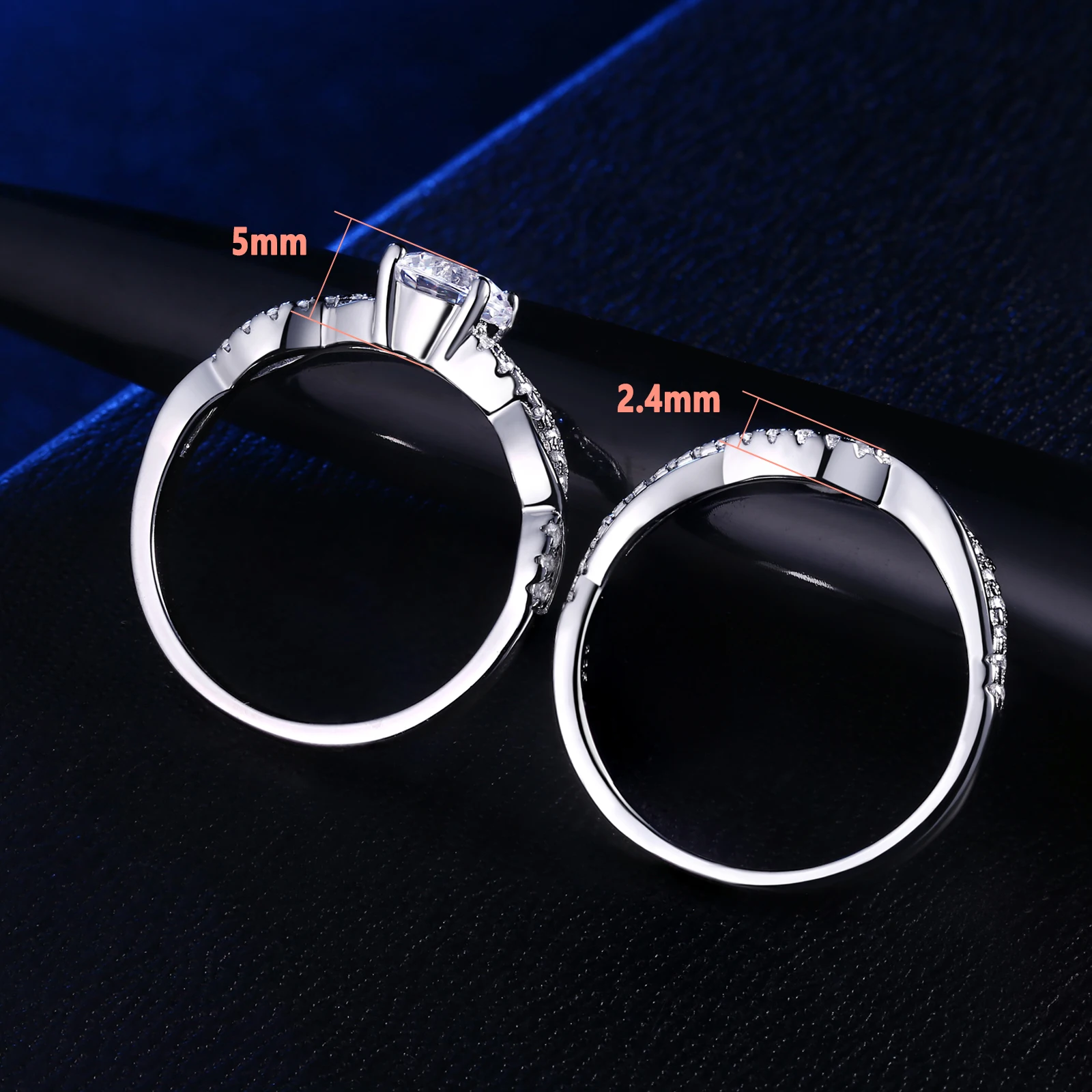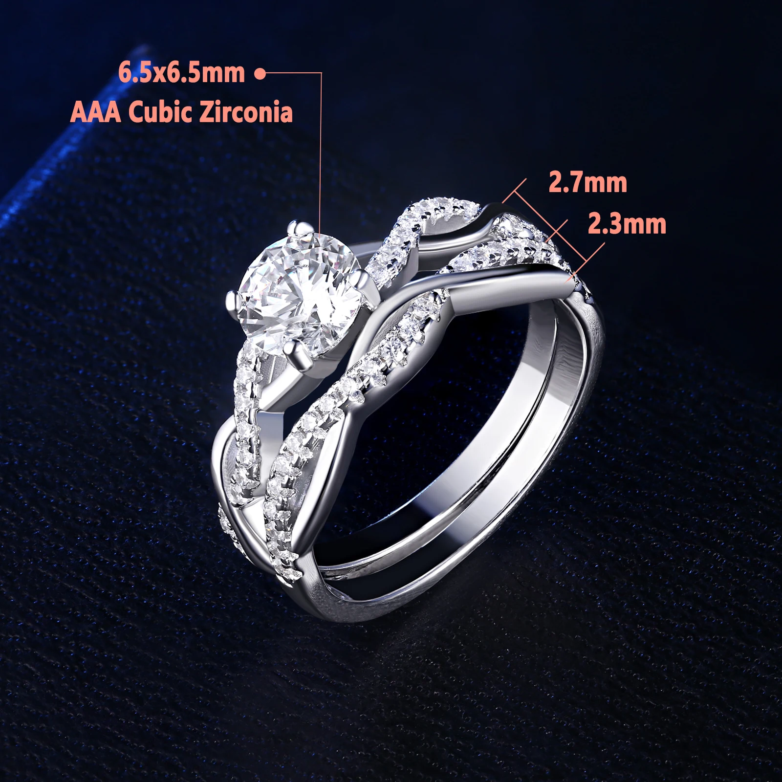 • Fleepmart 2 Pcs 925 Sterling Silver Twist Cross Rings Wedding Engagement Ring Sets For Women AAAA Zircon Jewelry