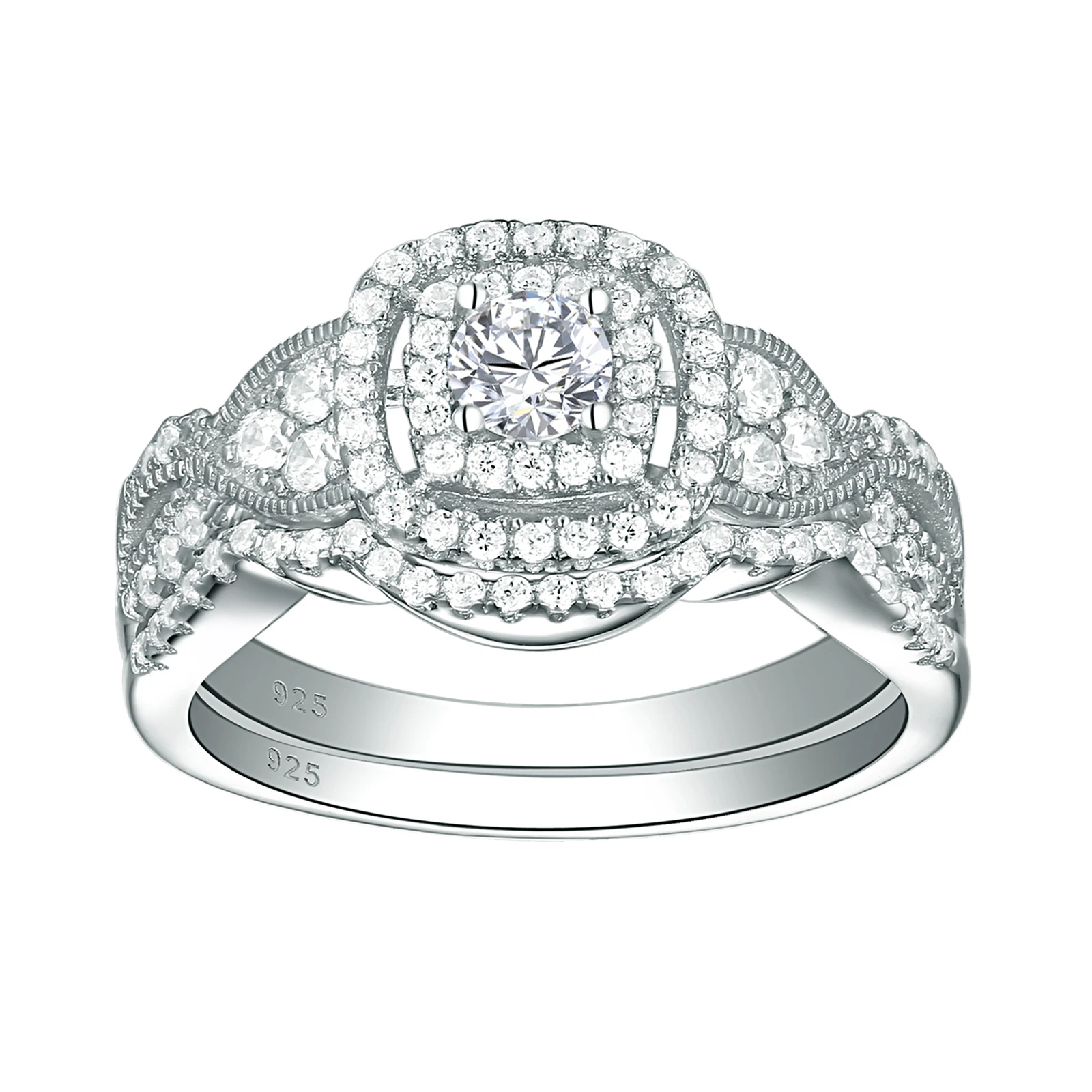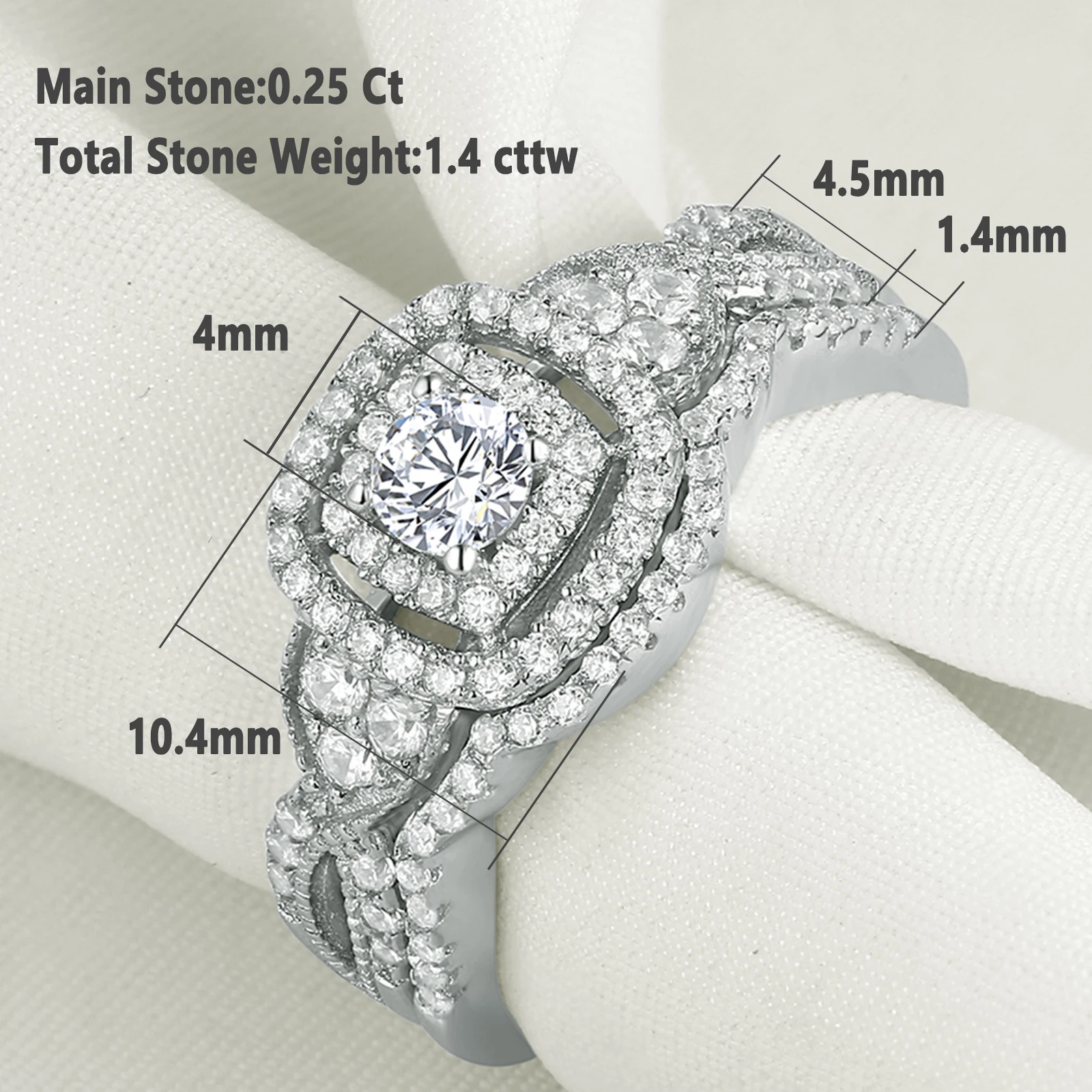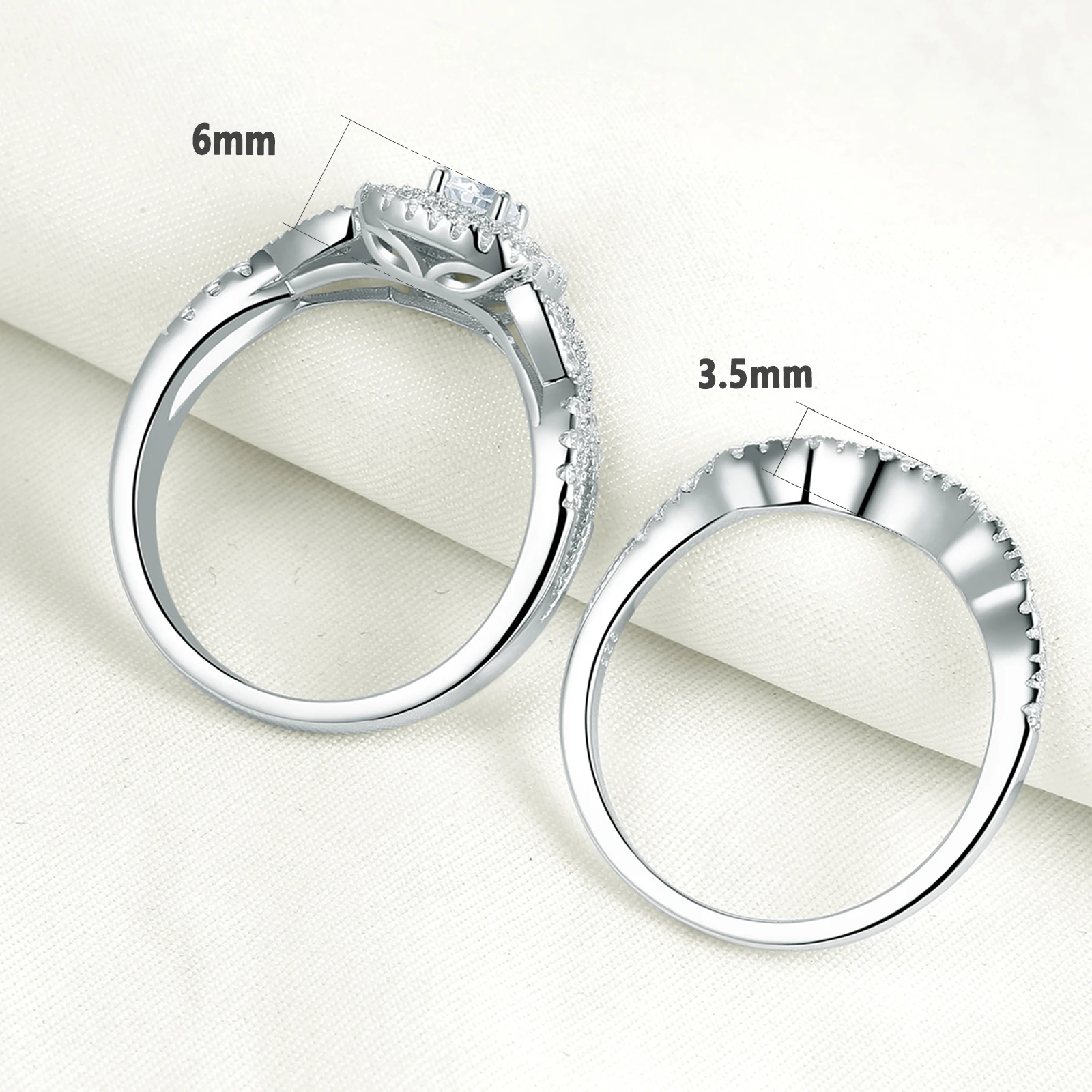 Fleepmart 2 Pcs 925 Sterling Silver Wedding Rings For Women Engagement Ring Bridal Set Classic Jewelry AAAAA Cubic Zircons