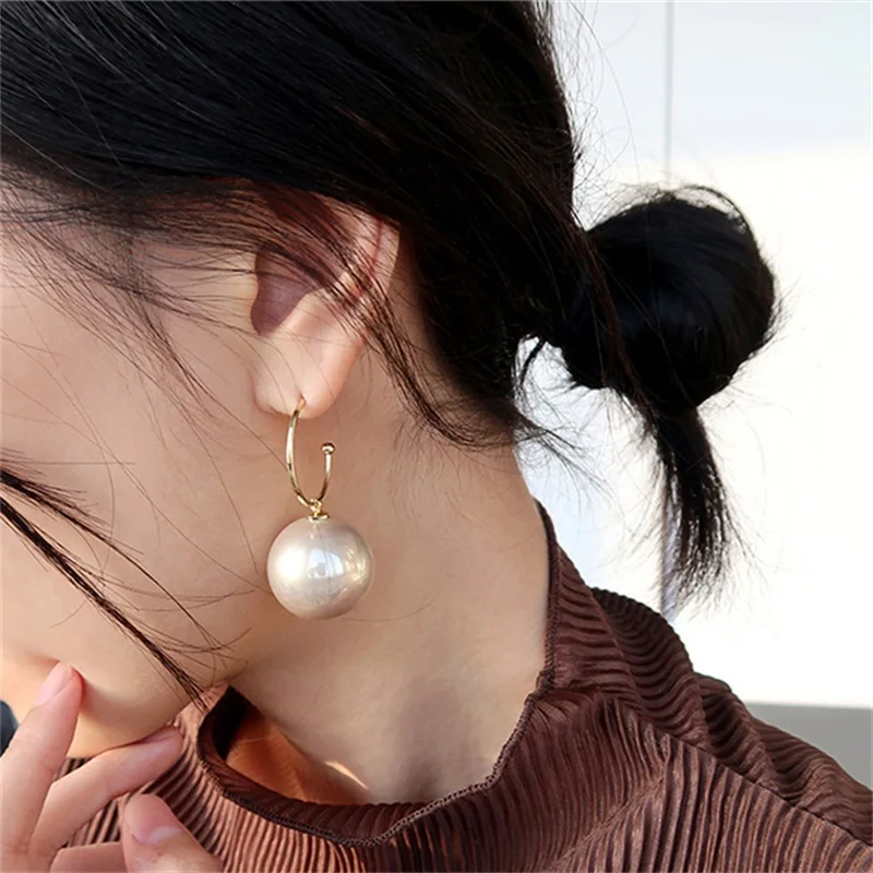 Fleepmart 2 Pcs/set Women Earrings Simple Round Pearl Pendant Circle Earring Set Party Wedding Elegant Jewelry Gift Accessories