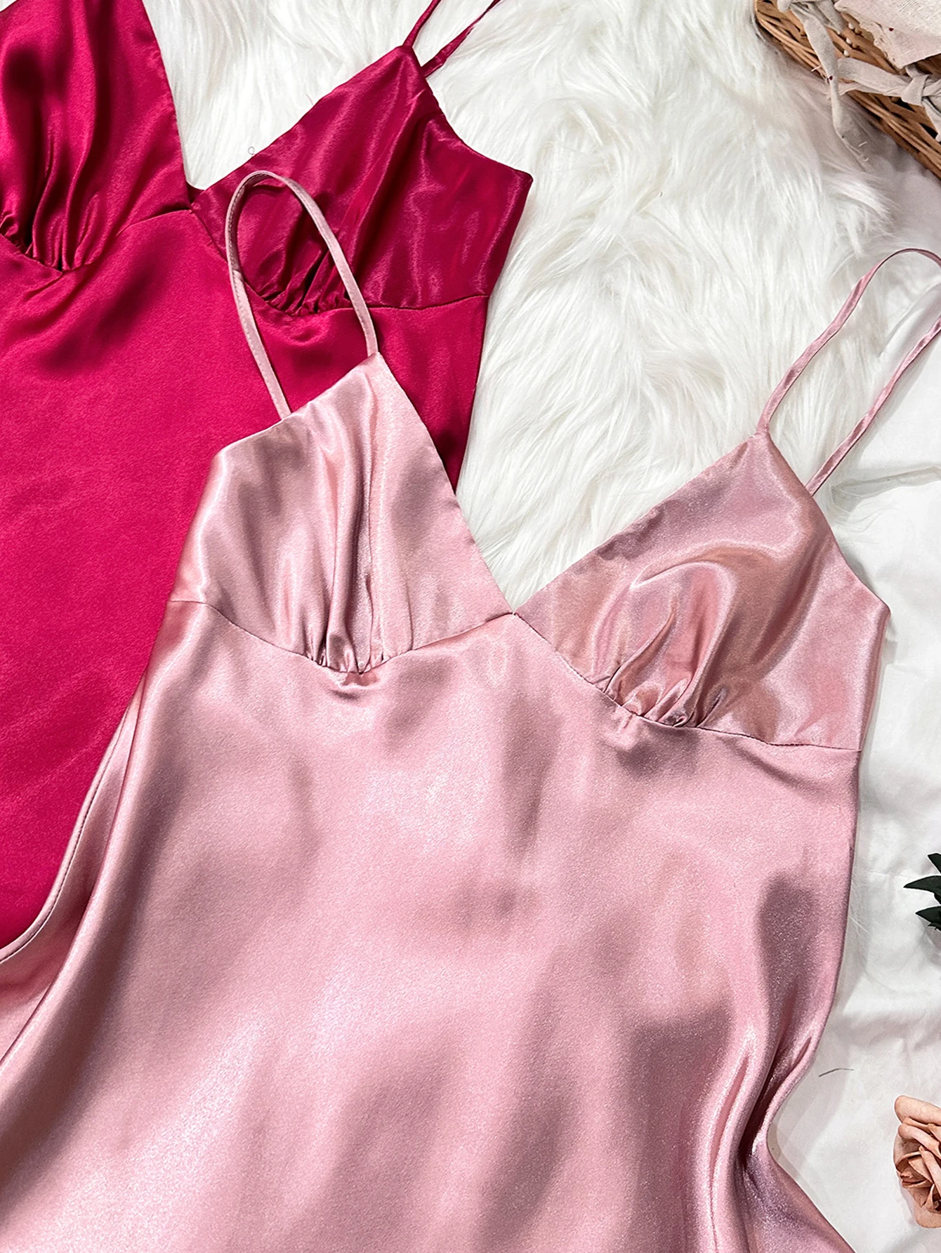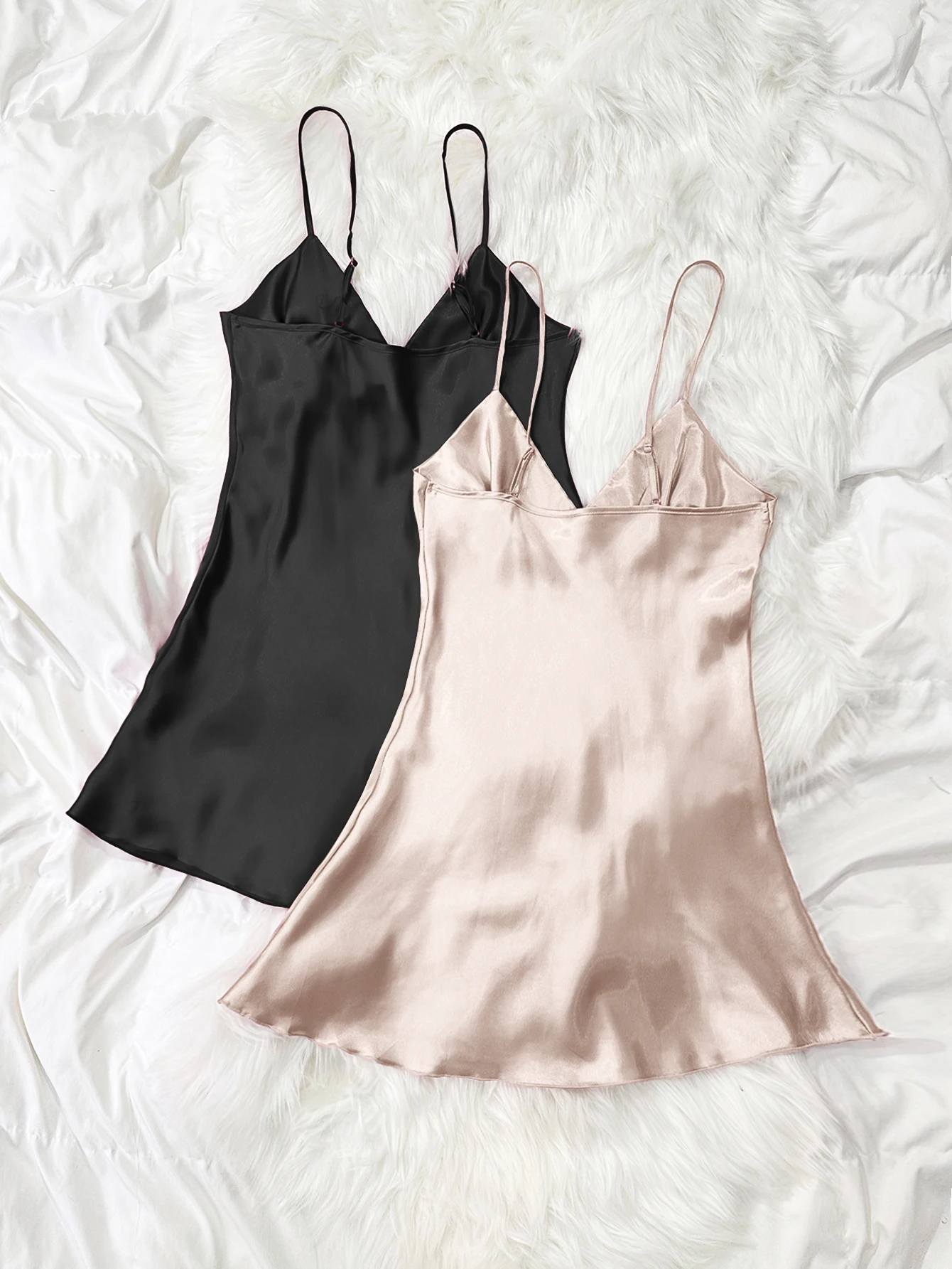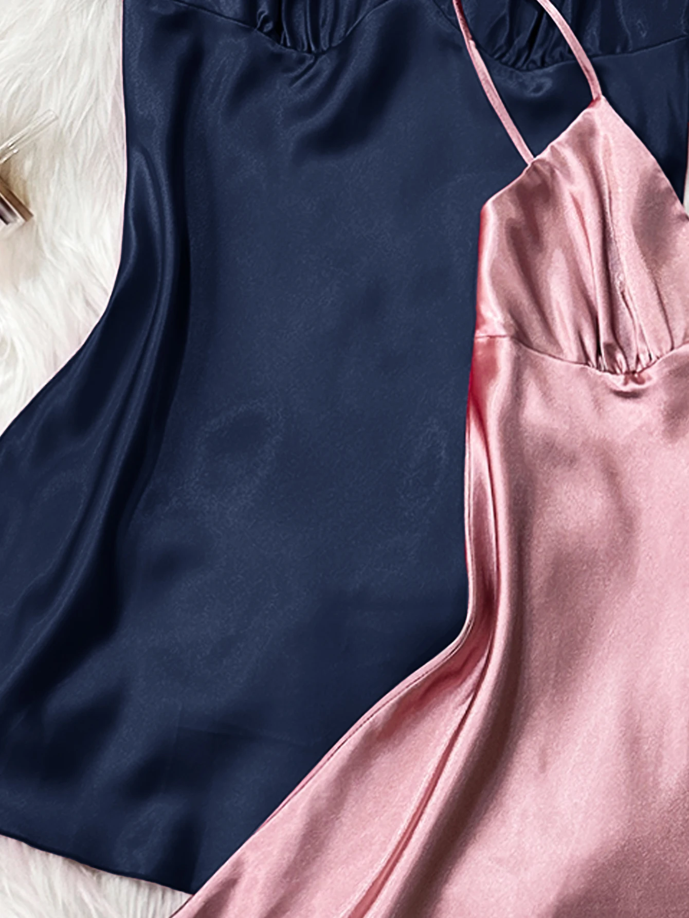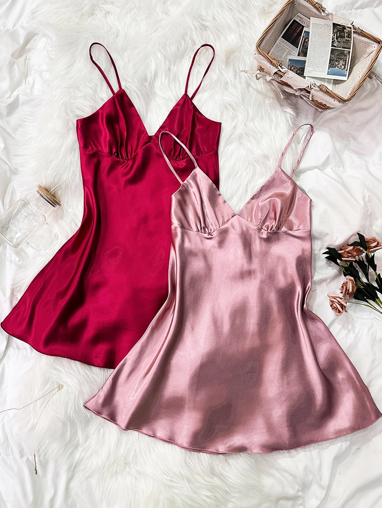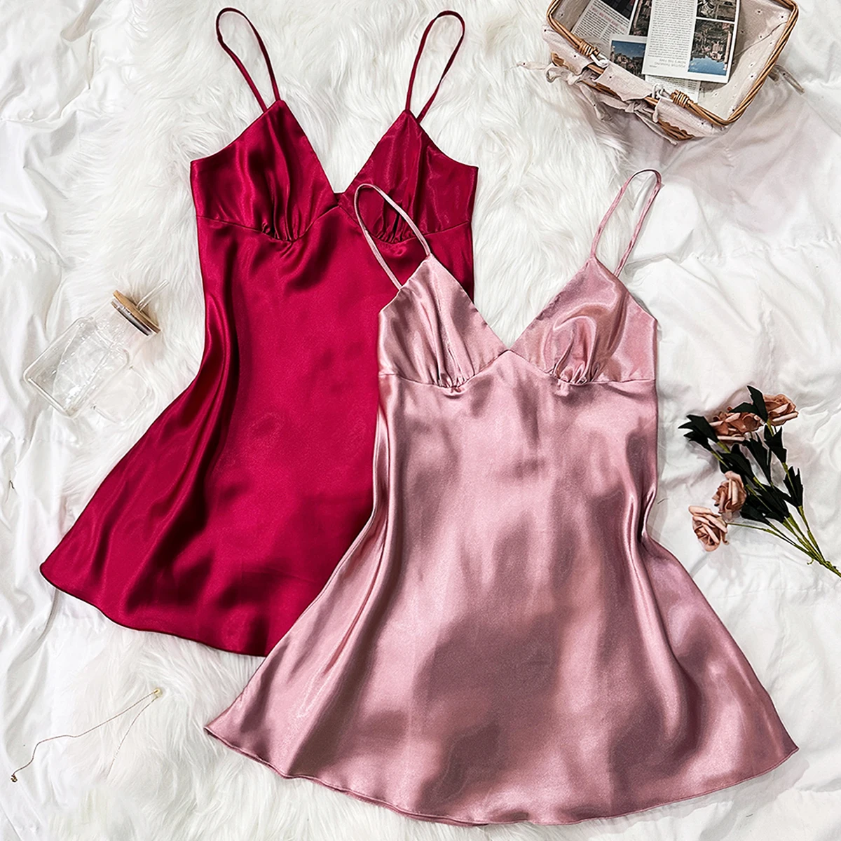 Fleepmart 2 Pcs Solid V Neck Nightdress Elegant Spaghetti Strap Sleep Dress Women’s Sleepwear DressesFleepmart 2 Pcs Solid V Neck Nightdress Elegant Spaghetti Strap Sleep Dress Women’s Sleepwear Dresses
