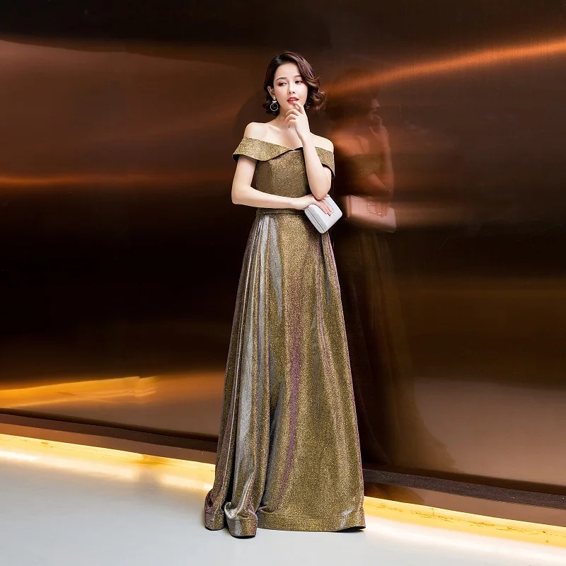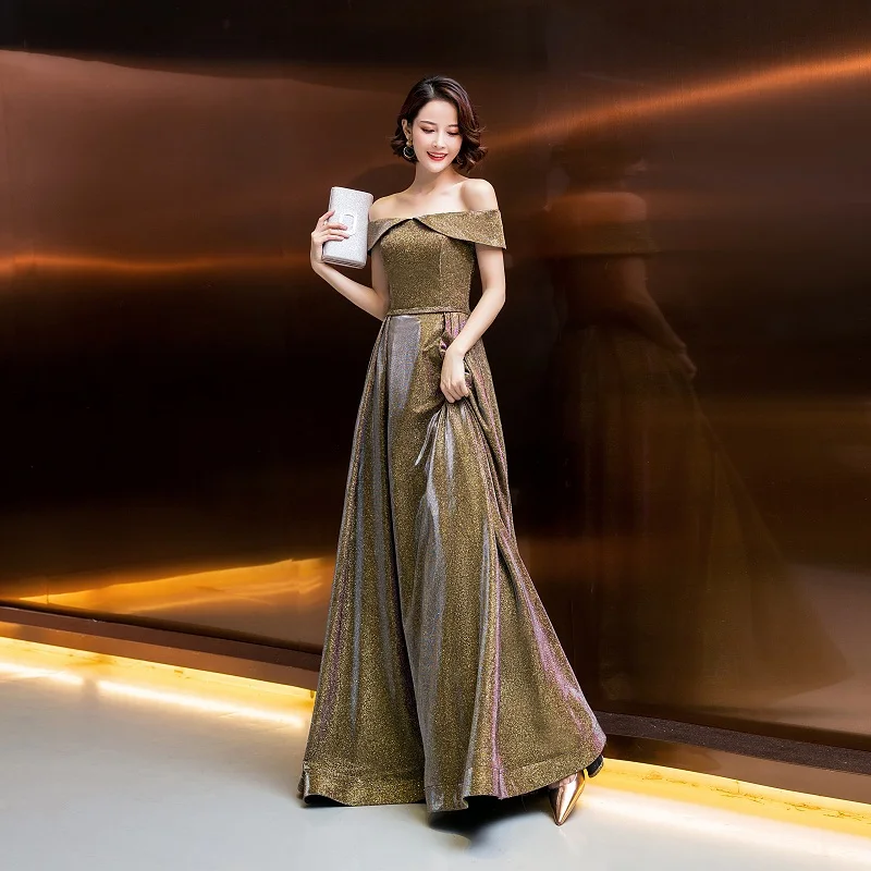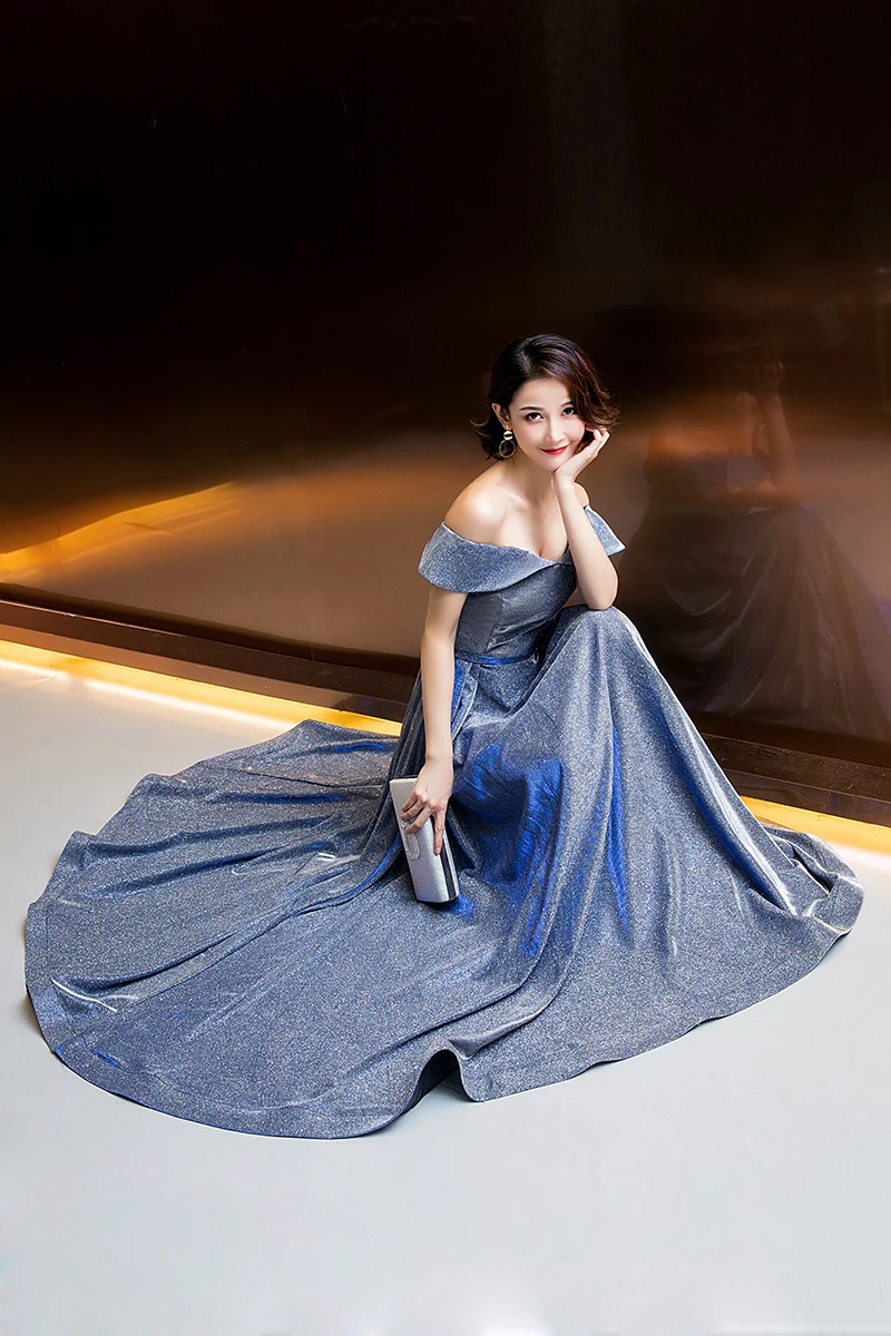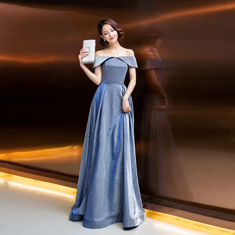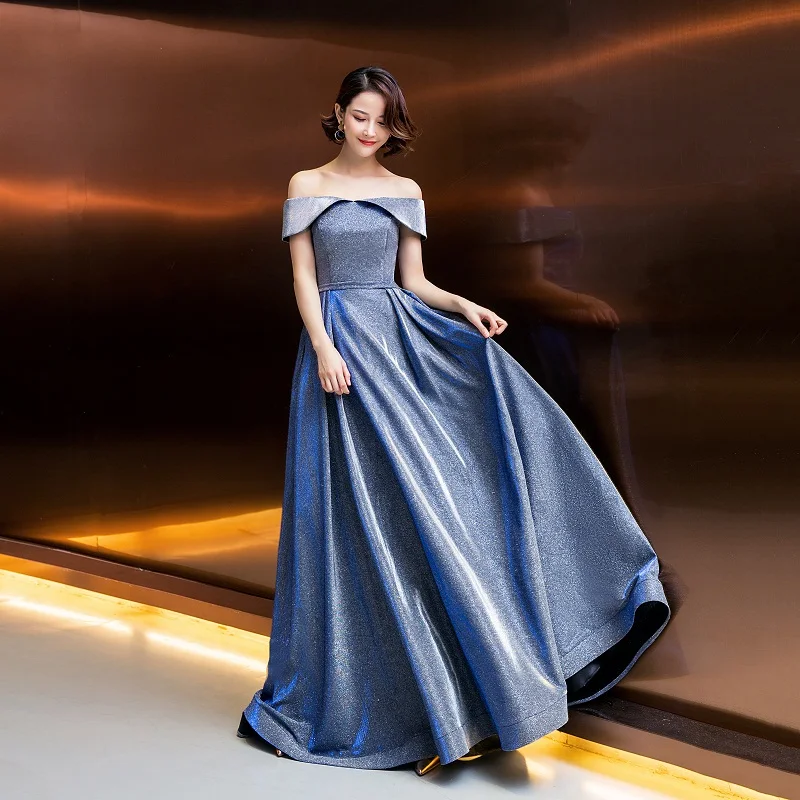 Fleepmart 2021 Evening Dresses bling Elegant Boat Neck Robe Longue Prom Gown Sexy Formal Dress Vestido De Fiesta lacing dresses