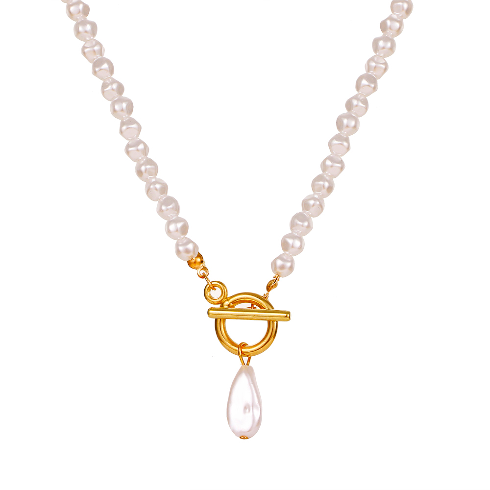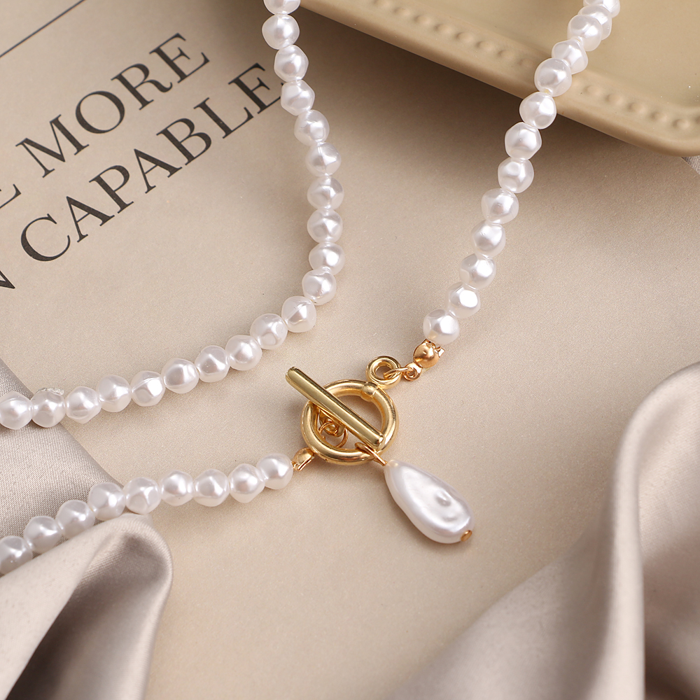 Fleepmart 2021 Irregular Pearl Pendant Necklace Female Retro Geometric Imitation Pearl OT Buckle Choker Necklace Punk Beaded Chain Jewelry