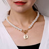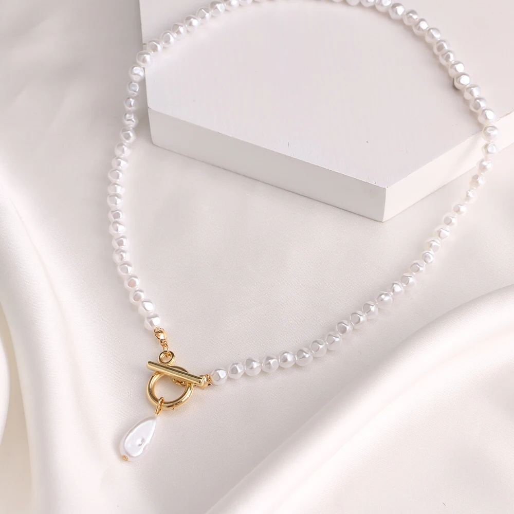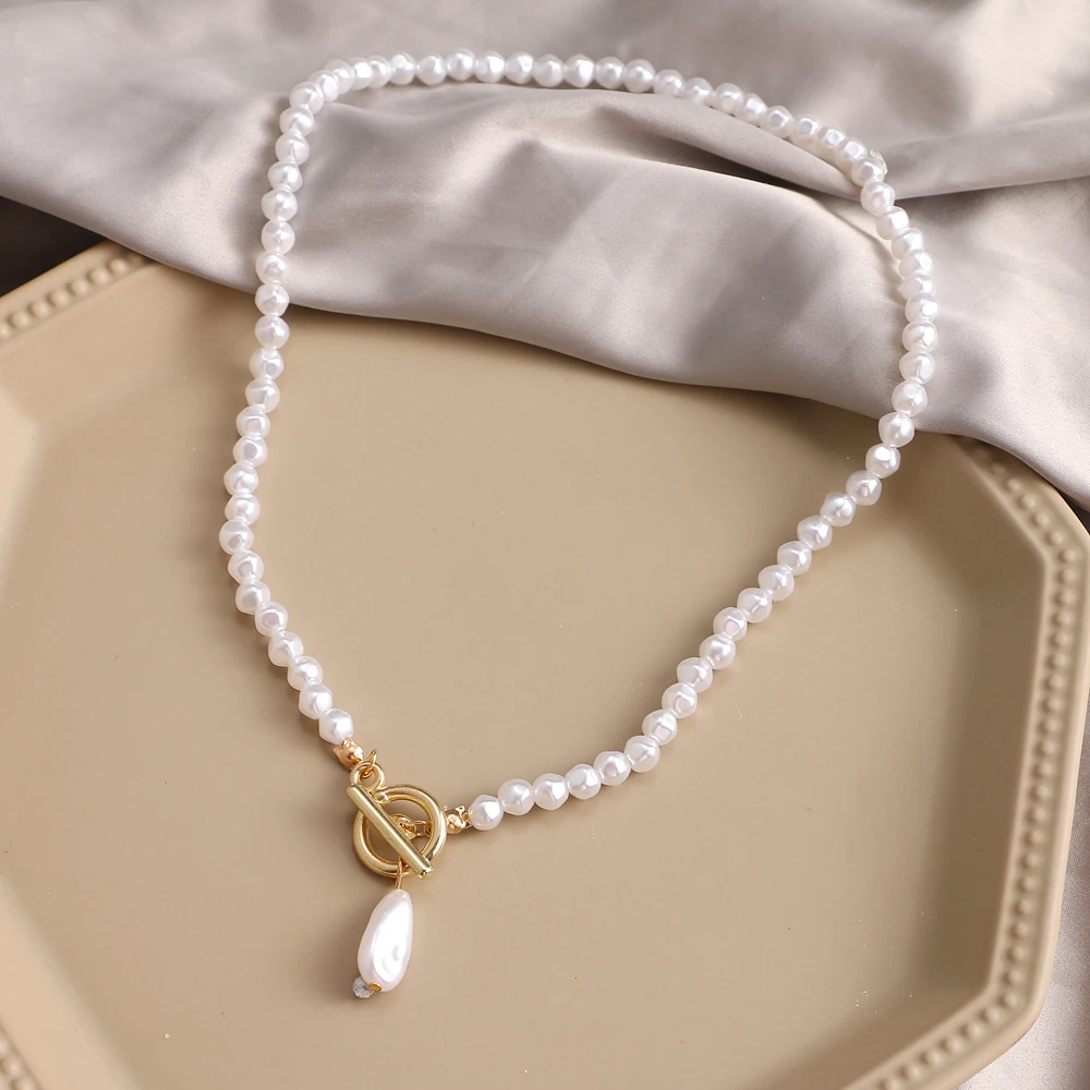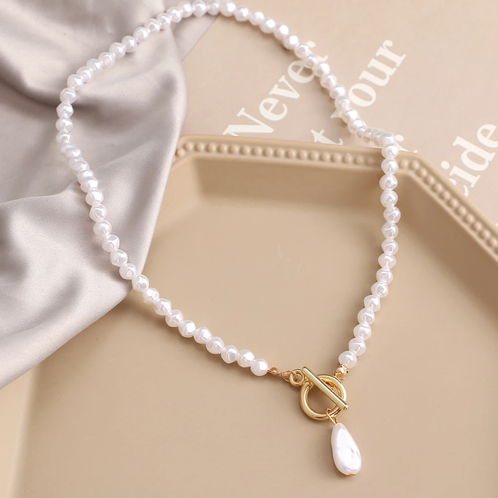 Fleepmart 2021 Irregular Pearl Pendant Necklace Female Retro Geometric Imitation Pearl OT Buckle Choker Necklace Punk Beaded Chain Jewelry