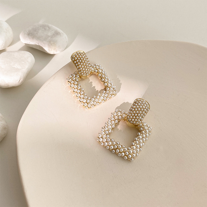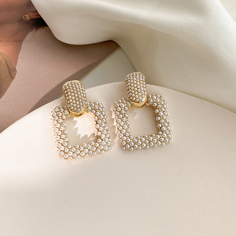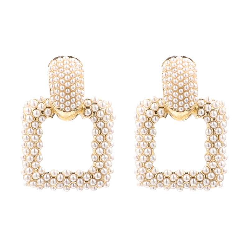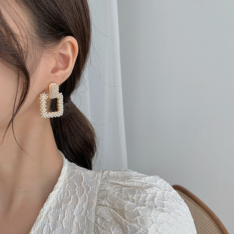 Fleepmart 2021 New Fashion Sweet Pearl Joker Senior Drop Earrings Elegant Contracted Geometric Square Senior Women Earrings Atmosphere