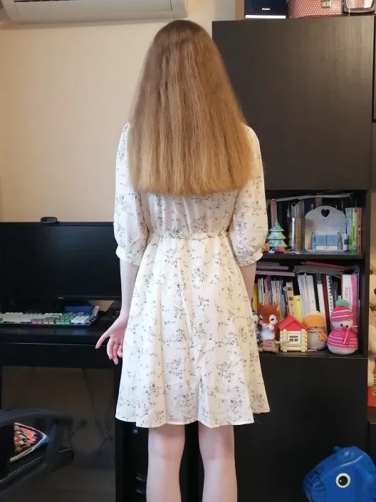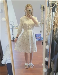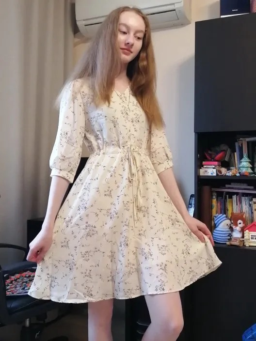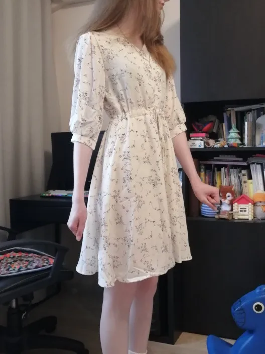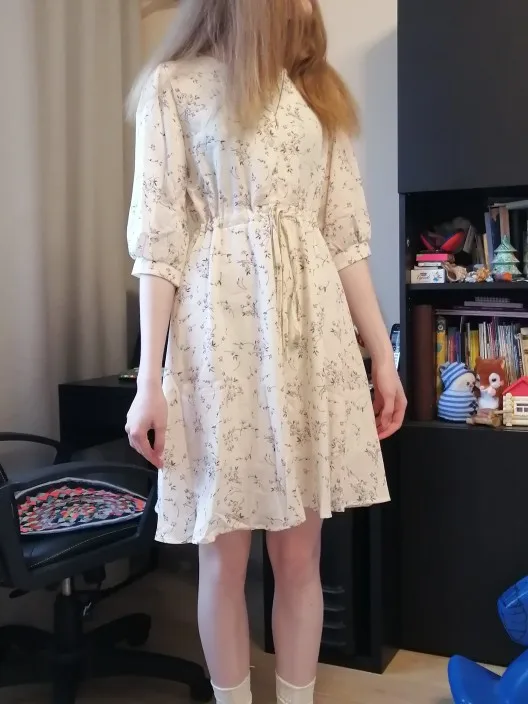 Delivery was fast with Aliexpress standard shipping. The dress design makes it easy to wear and remove. For a height of 160cm, the dress reaches my knee. The material is good and not see through. It has an inner lining. The waist area isn't too high like many other dresses on Ali. The waist size is also adjustable to liking. The best thing is my slightly fat tummy doesn't show. ;)
