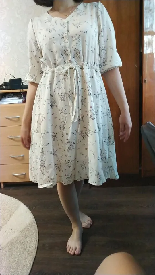 Лёгкое платье, удобное, не сковывает движения, выглядит элегантно. Сшито платье аккуратно, нитки не торчат, не обработаны только дырочки род завязки, но это не "-". Мои параметры: 167см, 89-70- 90. Моменты при ношении: слегка просвечивает верхняя часть, нужно подбирать белье; ткань продувается, но при температуре выше 27° будет не очень комфортно (температура для СПб).