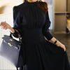 Fleepmart 2021 new Korean ladies social collar simple dress female Zippers Full Regular Natural Stand Sheath Office Lady