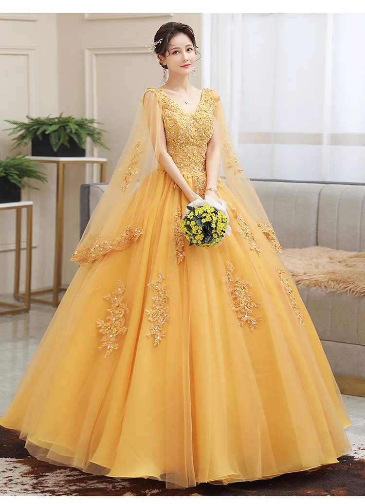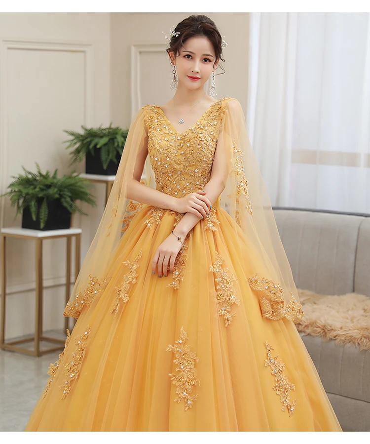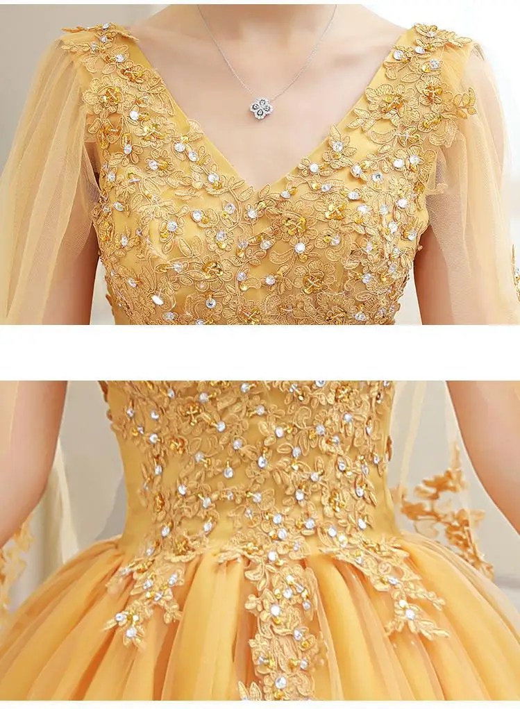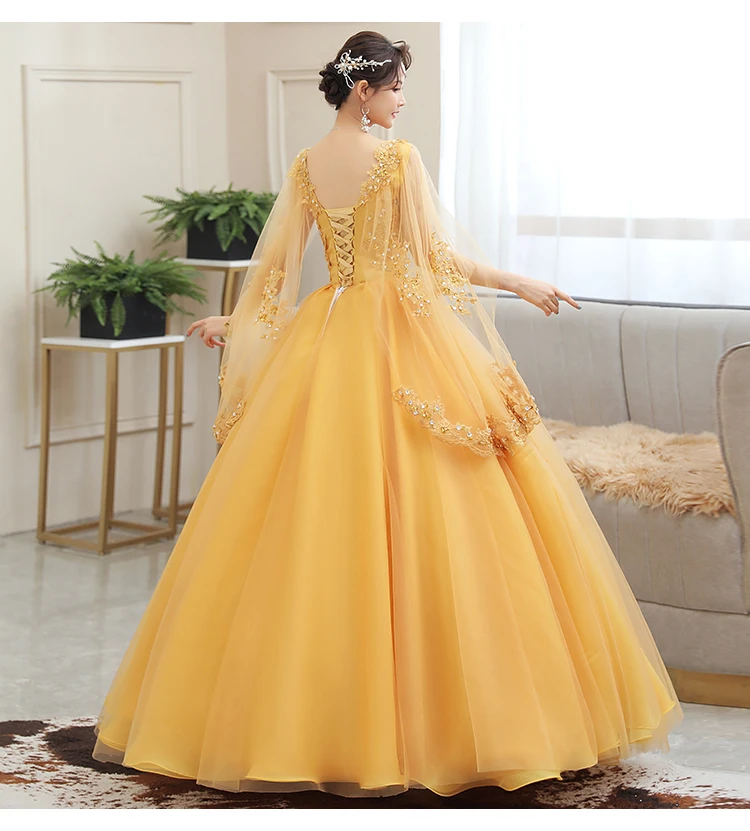 Fleepmart 2021 New Quinceanera Dresses Long Sleeve Elegant V-neck Party Dress Luxury Lace Ball Gown Vintage Prom Dress Customize Size