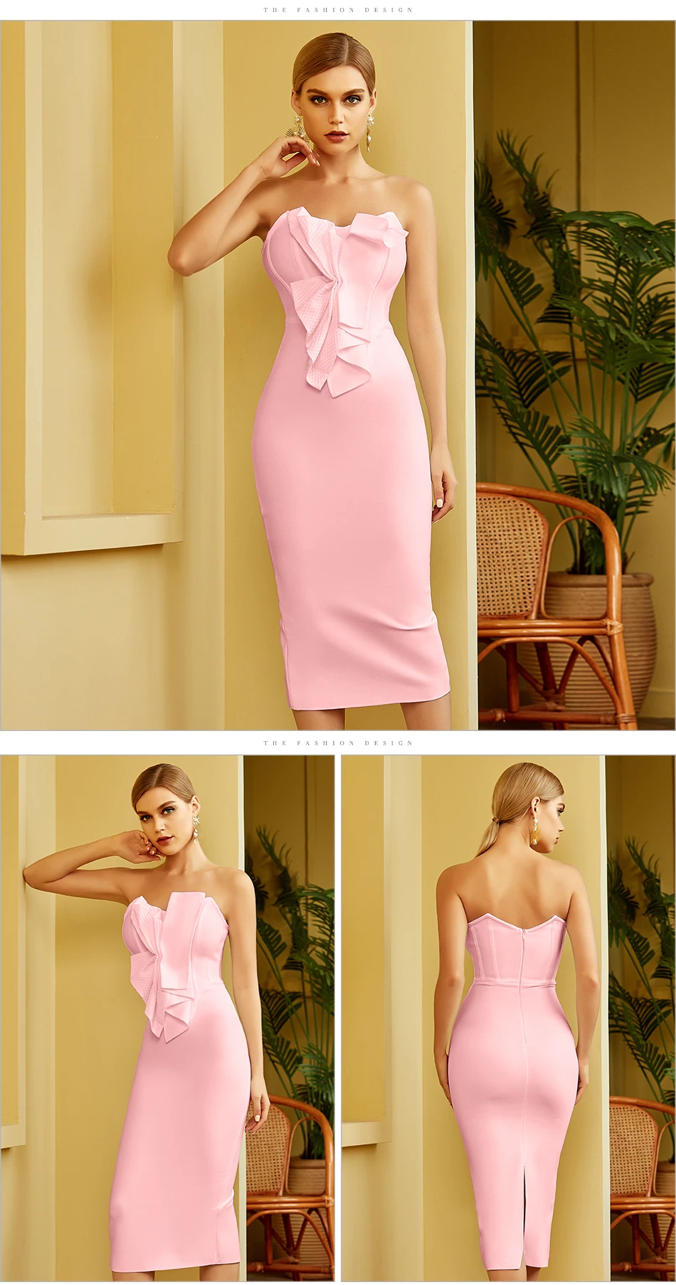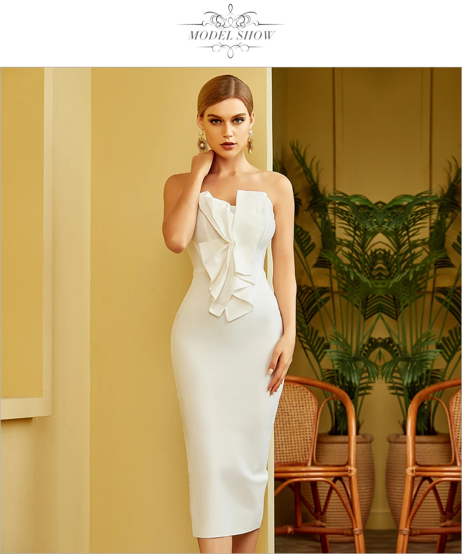 Fleepmart 2021 New Summer Women White Sleeveless Bandage Dress Sexy Strapless Ruffles Pink Clubwear Celebrity Runway Evening Party Dresses