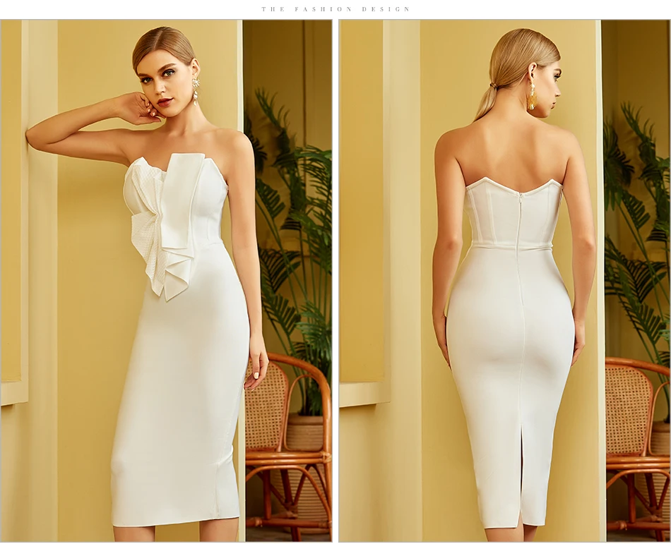 2021 Fleepmart 2021 New Summer Women White Sleeveless Bandage Dress Sexy Strapless Ruffles Pink Clubwear Celebrity Runway Evening Party DressesNew Summer Women White Sleeveless Bandage Dress Sexy Strapless Ruffles Pink Clubwear Celebrity Runway Evening Party Dresses