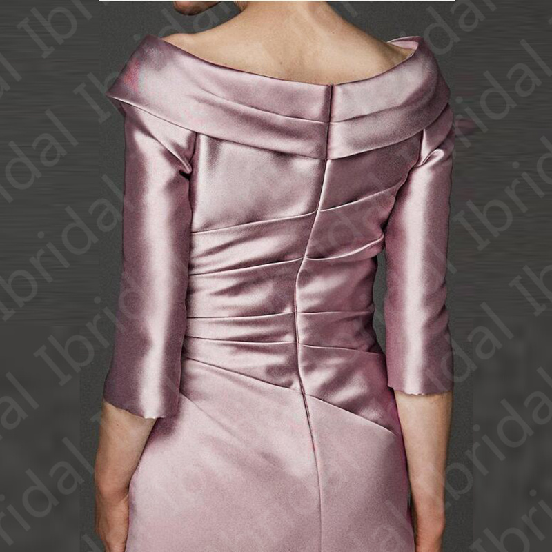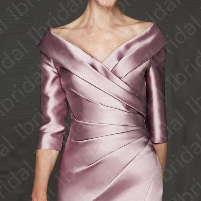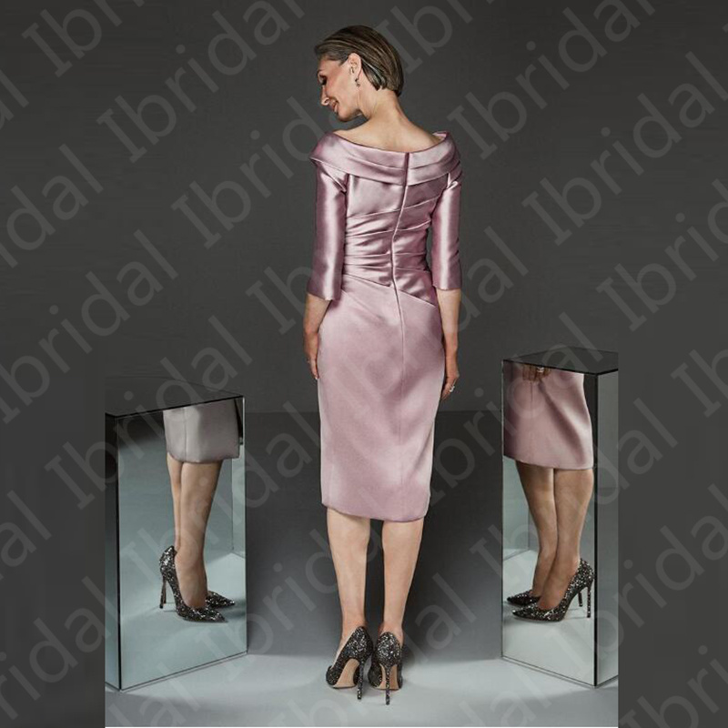 Fleepmart 2021 Simple Modern Sheath Lilac Satin Plunge V Neckline Mother Dress Knee Length Mother of the Groom Gowns Three Quarter Sleeve