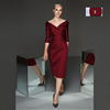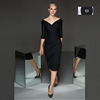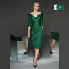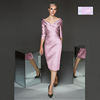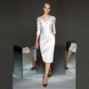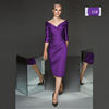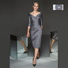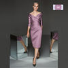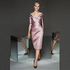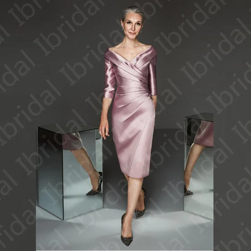 Fleepmart 2021 Simple Modern Sheath Lilac Satin Plunge V Neckline Mother Dress Knee Length Mother of the Groom Gowns Three Quarter Sleeve