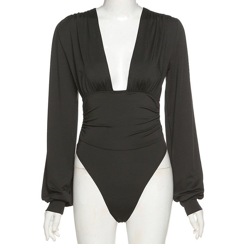 Fleepmart 2022 Autumn Winter Rompers Women Jumpsuits Sexy Club V Neck High Waist Solid Bodycon Regular Long Sleeve Female Bodysuits Women