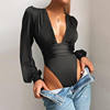 Fleepmart 2022 Autumn Winter Rompers Women Jumpsuits Sexy Club V Neck High Waist Solid Bodycon Regular Long Sleeve Female Bodysuits Women