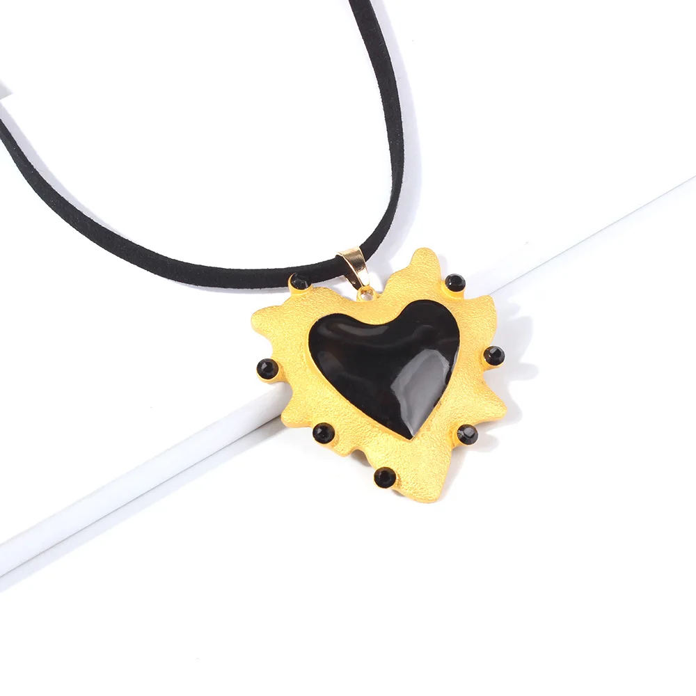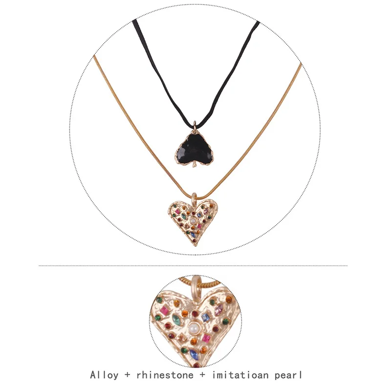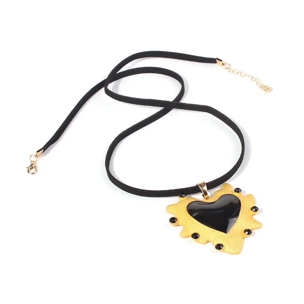 Fabulous necklace and really happy with how closely it resembles the photos. Quite large hearts & circle but not a long ribbon so you may want to buy a longer chain or ribbon. There's a gold or black heart ring thats a great match, too.