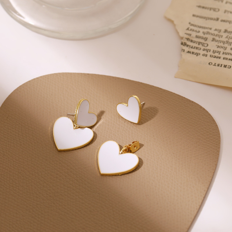 Fleepmart 2022 Fashion Heart Earrings For Women White Color Temperament Korean Love Dangle Stud Earring Female Cute Jewelry