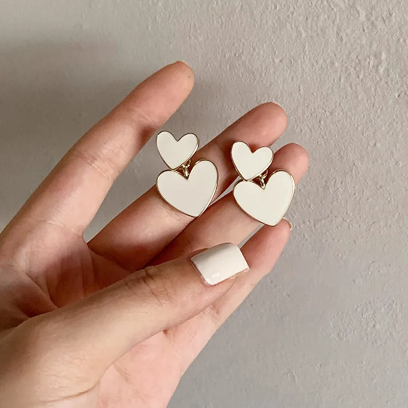 Fleepmart 2022 Fashion Heart Earrings For Women White Color Temperament Korean Love Dangle Stud Earring Female Cute Jewelry