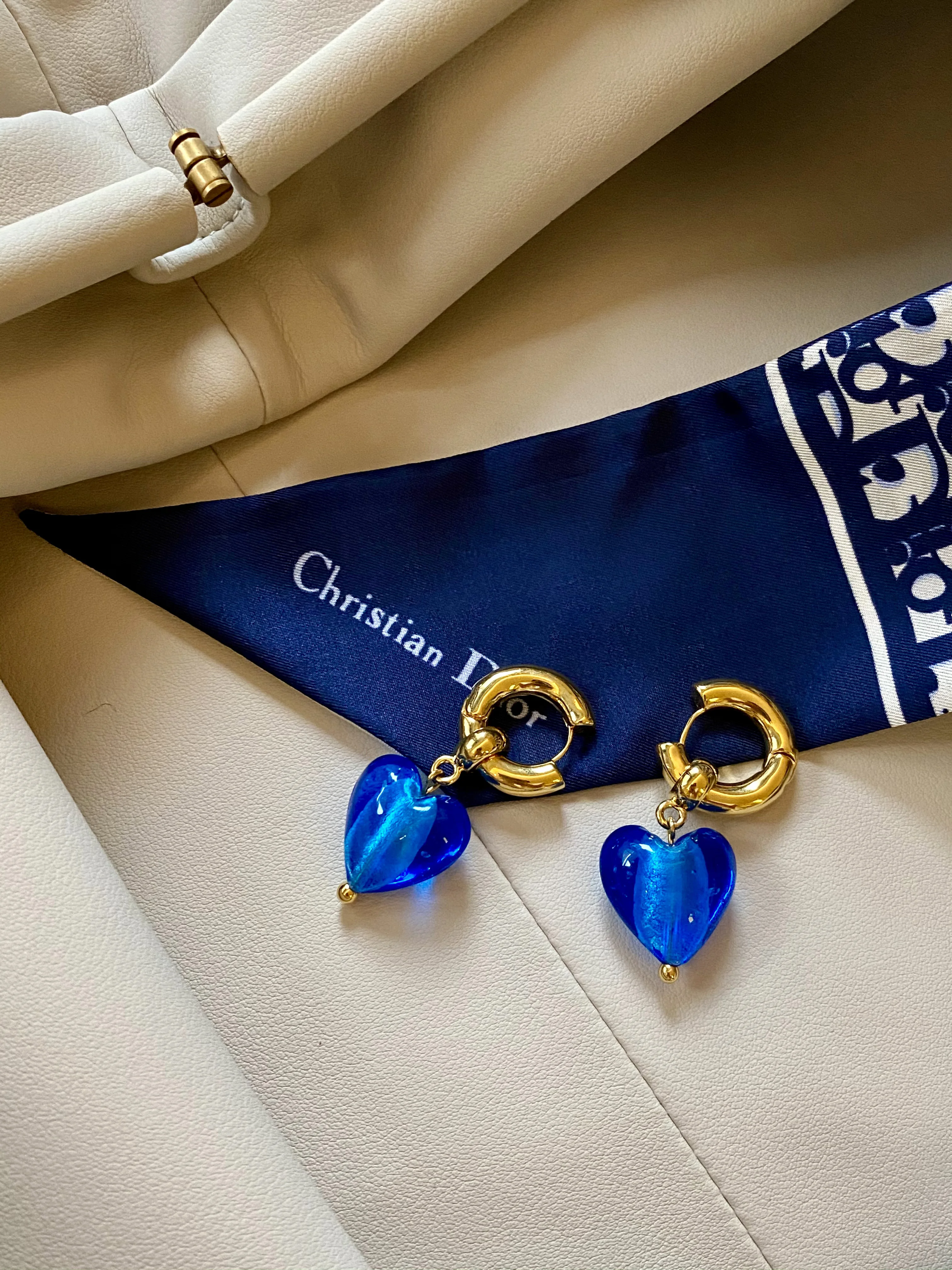Fleepmart 2022 Fashion vintage women light pink/coloured glaze/heart earrings/transparent/blue earrings girl jewelry gift