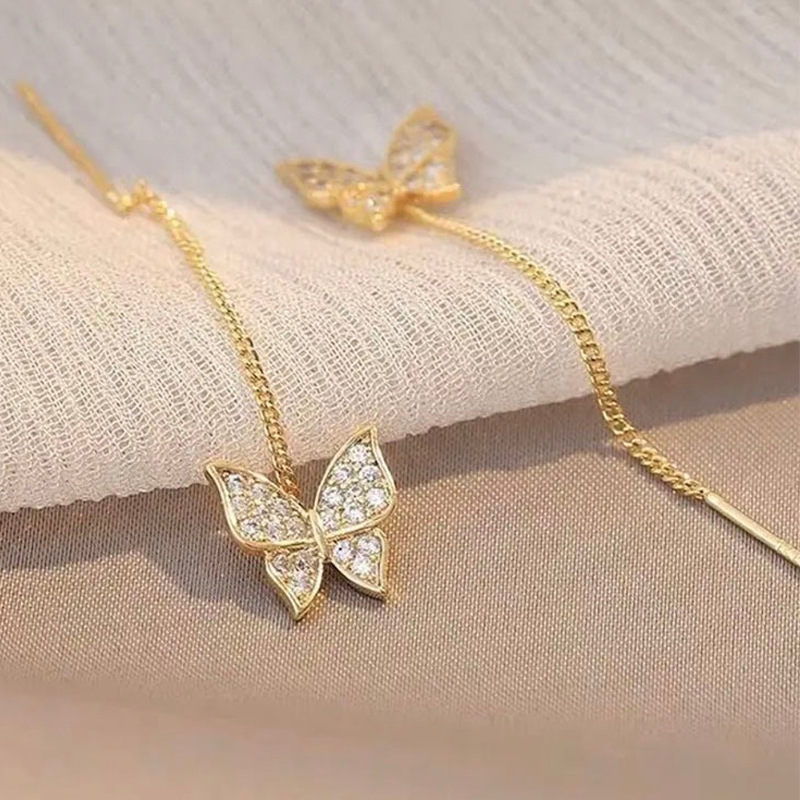 Fleepmart 2022 Inlaid Zircon Butterfly Earrings Delicate Simple Golden Butterfly Earrings Personalized Jewelry Earrings Anniversary Gift