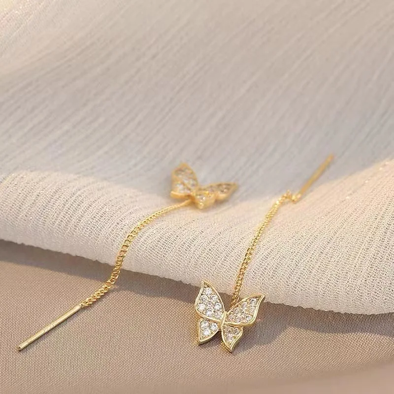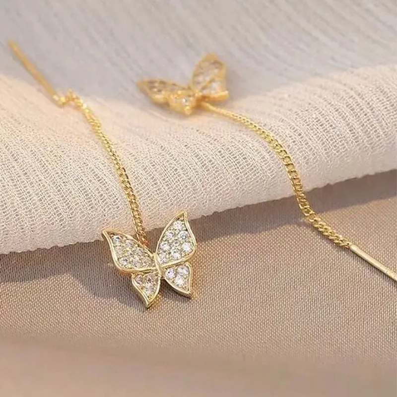 Fleepmart 2022 Inlaid Zircon Butterfly Earrings Delicate Simple Golden Butterfly Earrings Personalized Jewelry Earrings Anniversary Gift