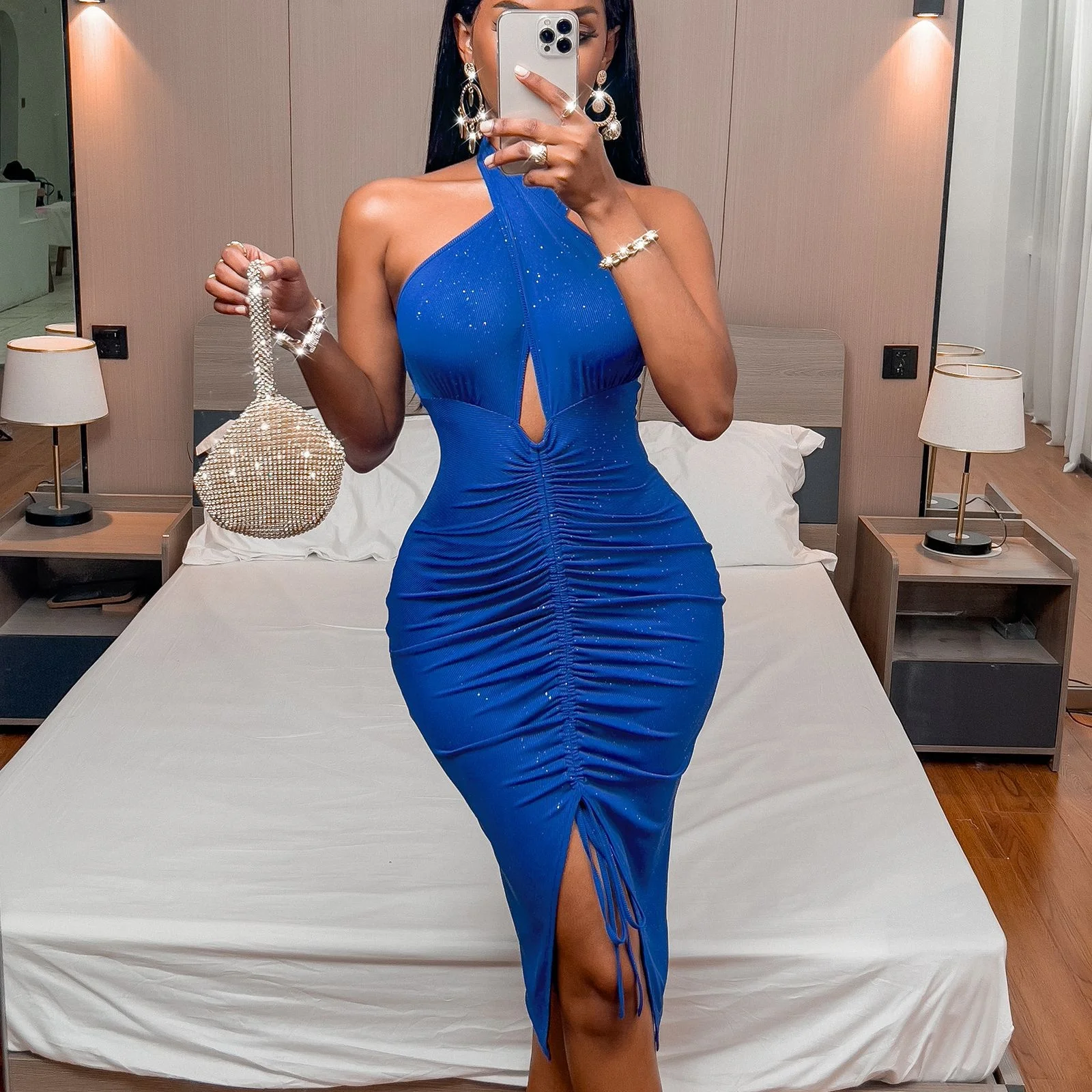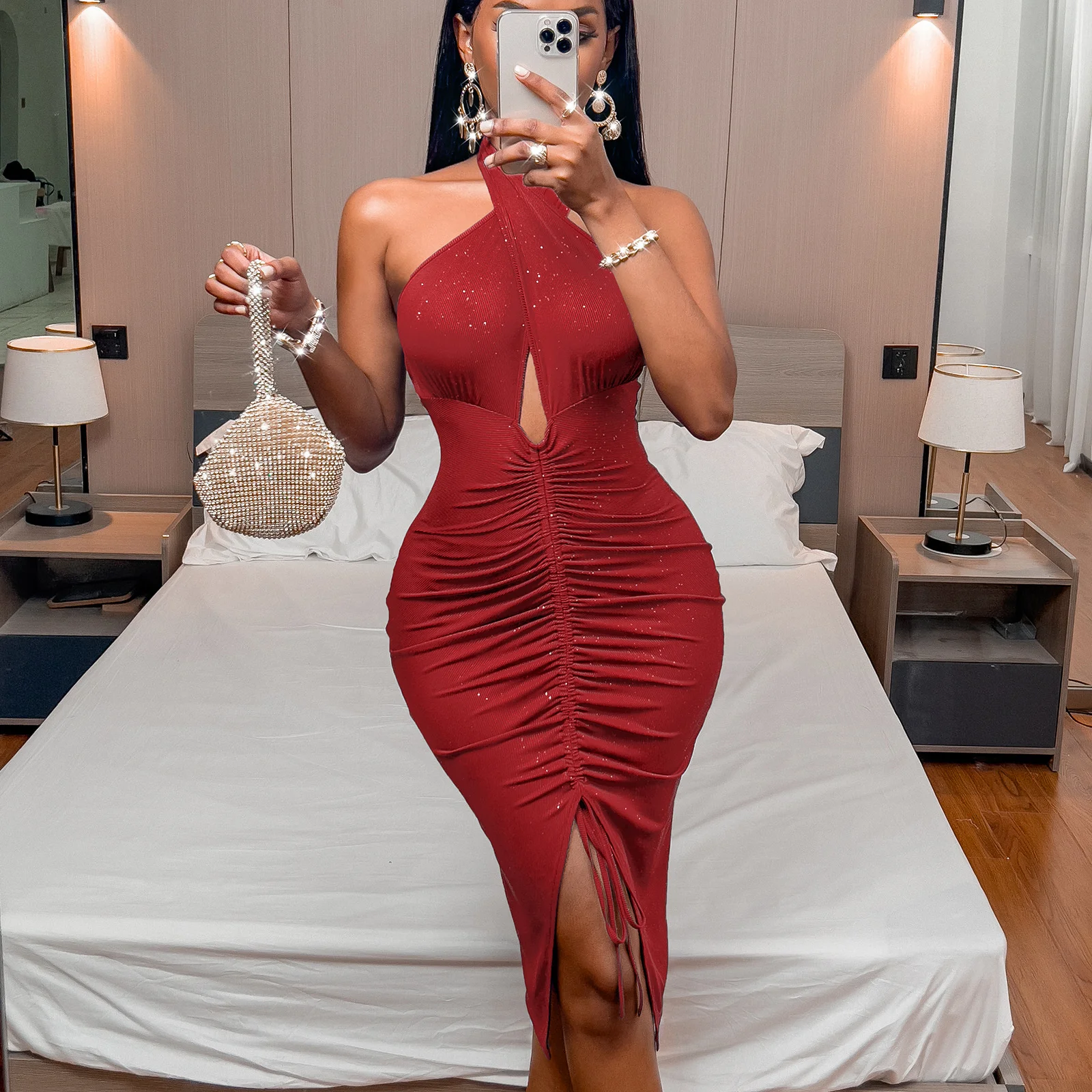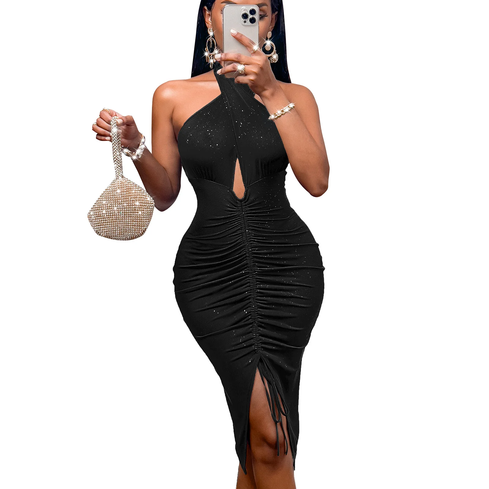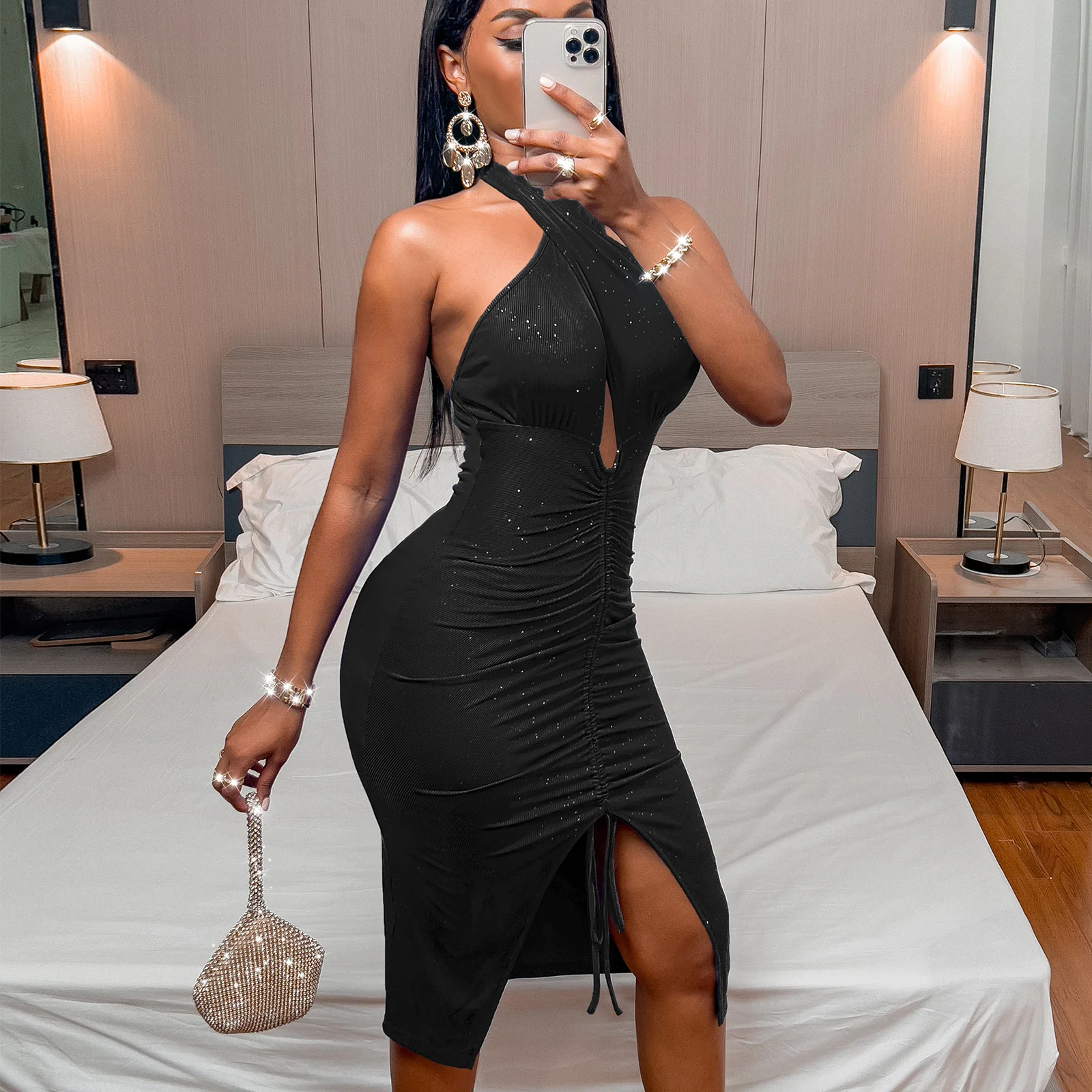 Fleepmart 2022 New Fashion Romantic Summer Sexy Bodycon Slit Slim Mid Length Pleated Dress Women Solid Sleeveless Backless Casual Dresses