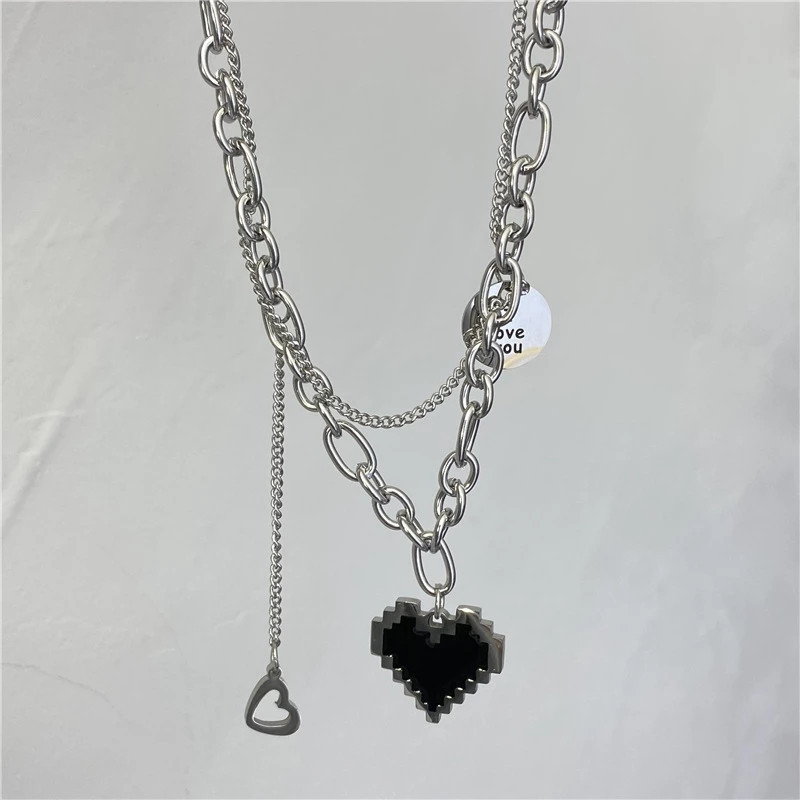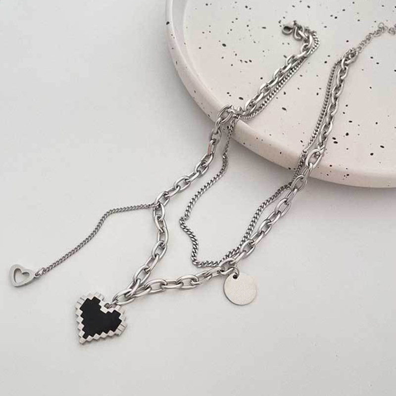 Fleepmart 2022 New Senior Fashion Women Heart Pendant Necklaces Fine Double Link Chain Metal Party Necklace Jewelry Gift
