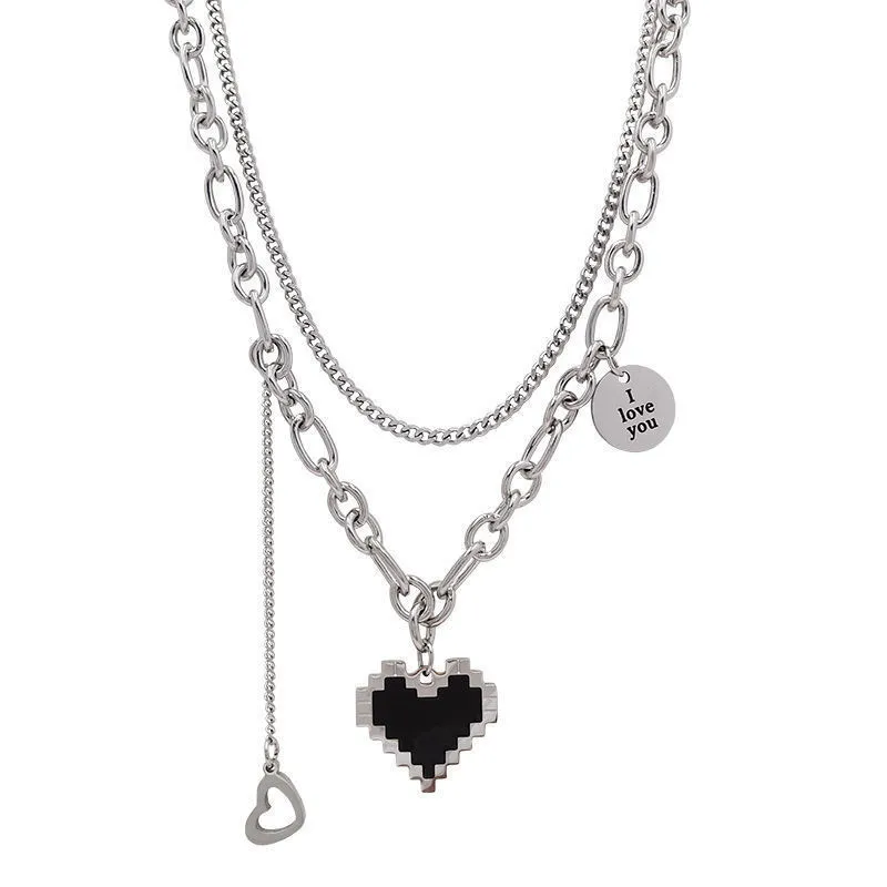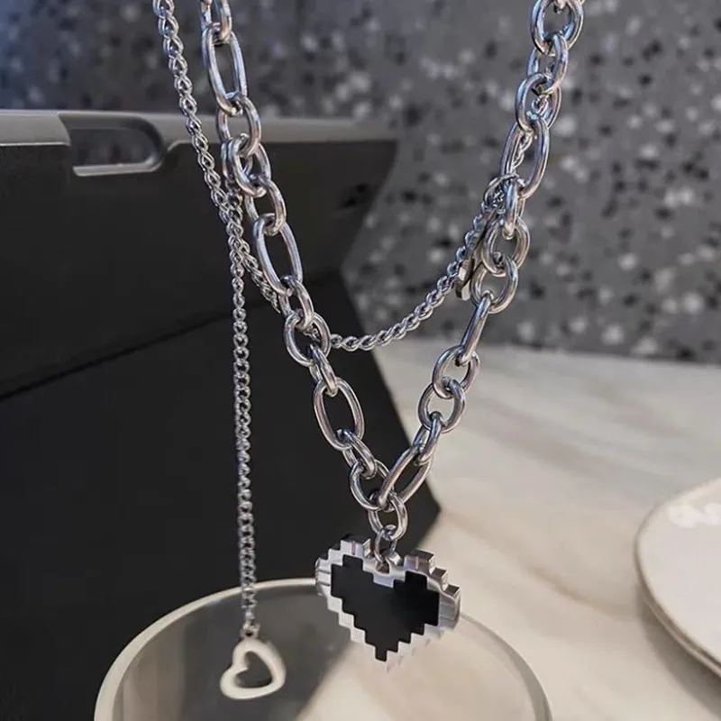 Fleepmart 2022 New Senior Fashion Women Heart Pendant Necklaces Fine Double Link Chain Metal Party Necklace Jewelry Gift