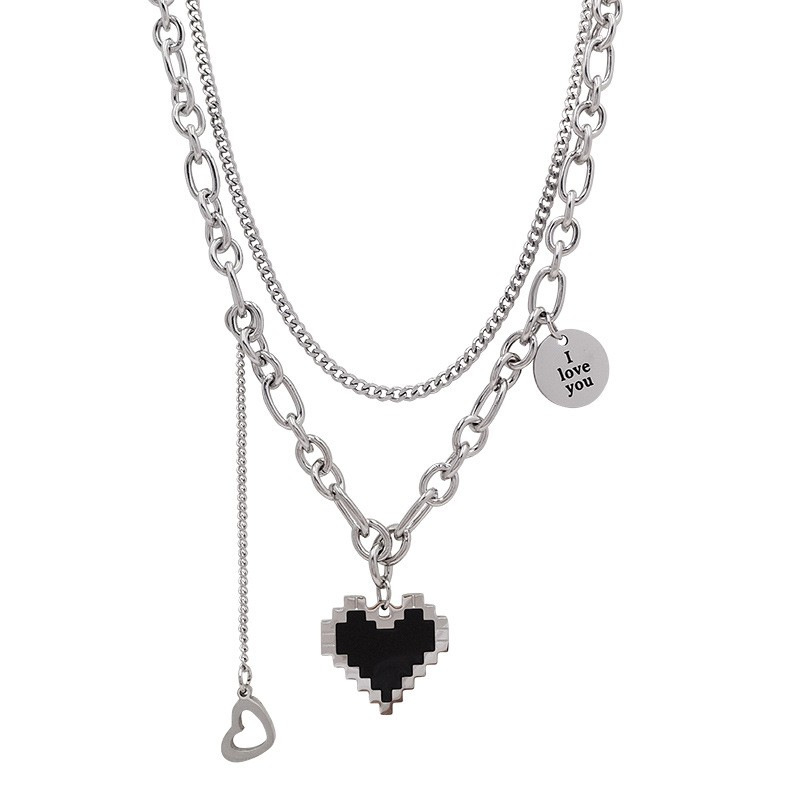 Fleepmart 2022 New Senior Fashion Women Pendant Necklaces Fine Double Link Chain Metal Heart Party Necklace Jewelry Gift