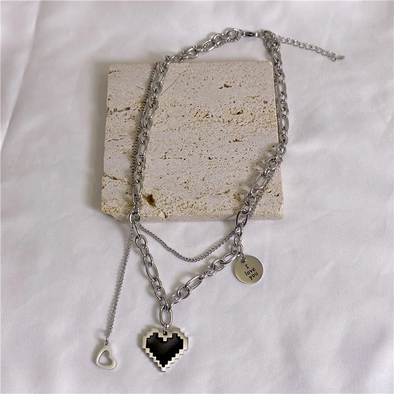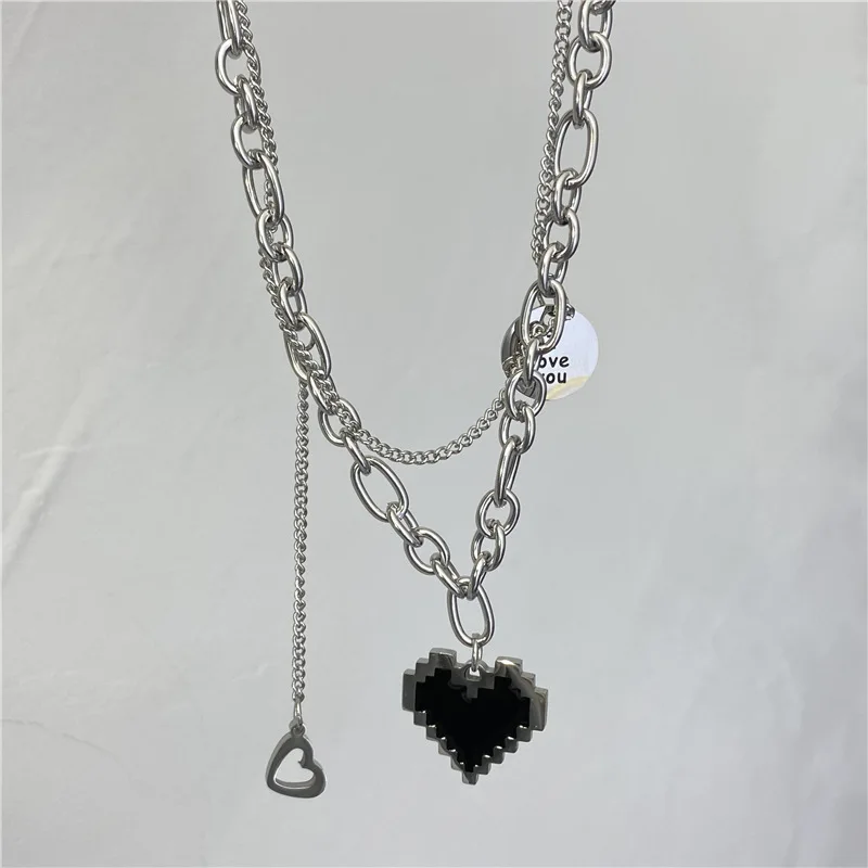 Fleepmart 2022 New Senior Fashion Women Pendant Necklaces Fine Double Link Chain Metal Heart Party Necklace Jewelry Gift