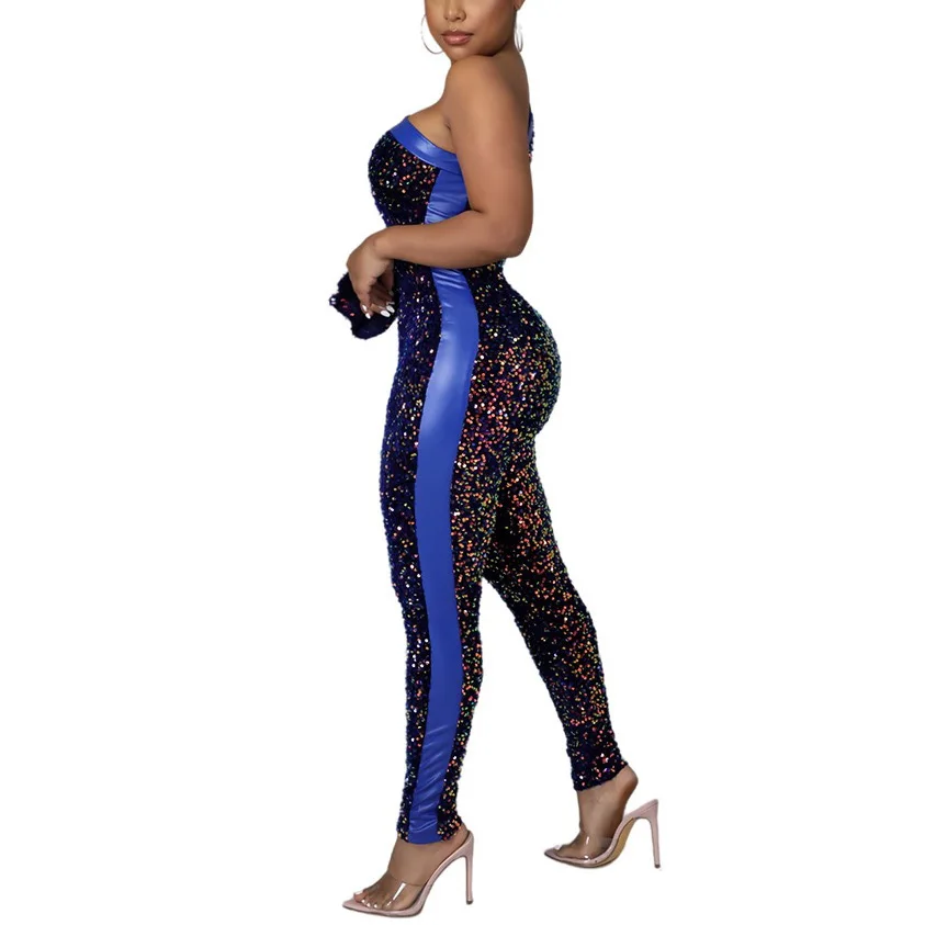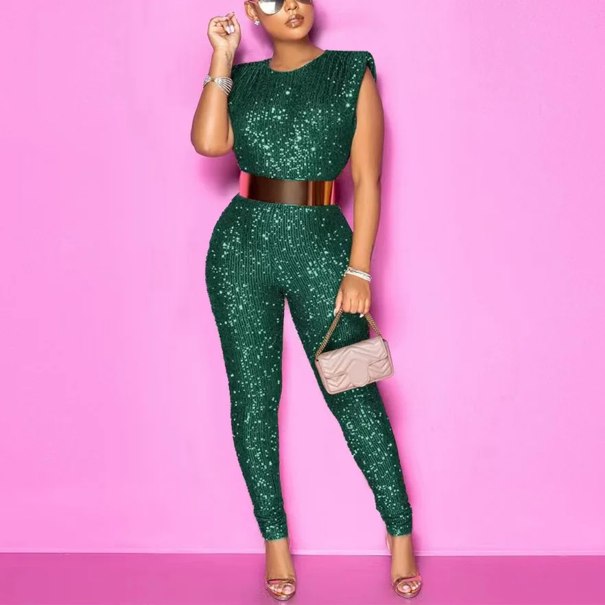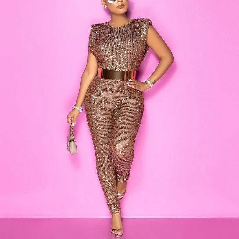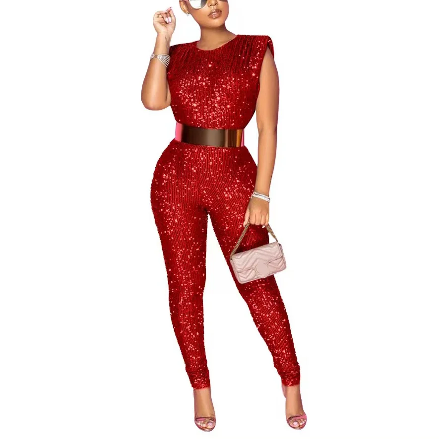 Fleepmart 2022 New Spring Sequined Jumpsuits Sleeveless High Waist Bodycon Shinny Elegant For Evening Party Night Club Rompers & Jumpsuits