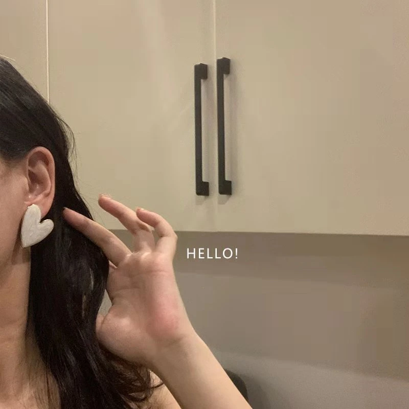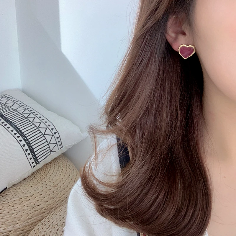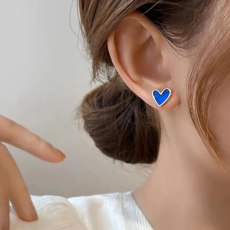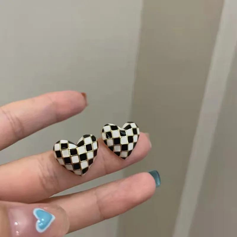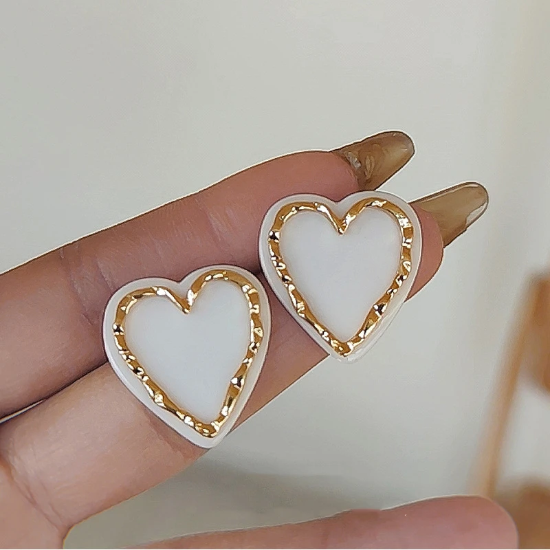Fleepmart 2022 New Trendy Simple Heart Stud Earrings For Women Girls Temperament Vintage White Black Color Earring Party Jewelry Gifts
