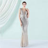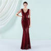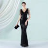 Fleepmart 2022 New Women Elegant V-neck Sleeveless Beading Evening Dress Sexy Mermaid Sequin Women Floor length Party Dress Vestidos