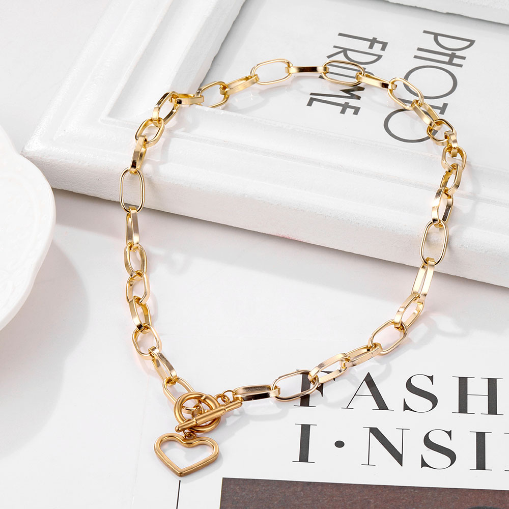 Fleepmart 2022 Punk Thick Chain Heart Choker Necklace Retro Gothic Rock Gold Color Silver Color Geometric Clavicle Necklace Jewelry Gift