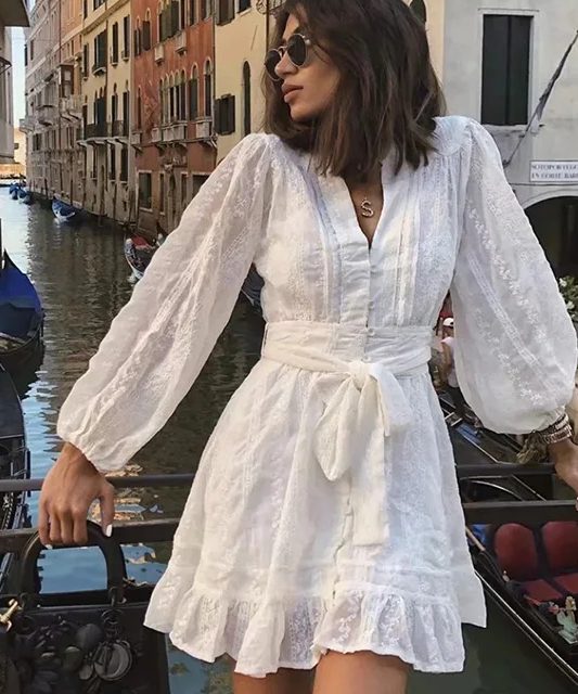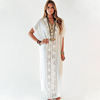 Fleepmart 2022 Sexy Hollow Out Lace Patchwork V-neck Short Sleeve Loose Summer Dress White Cotton Tunic Women Beach Wear Maxi Dress